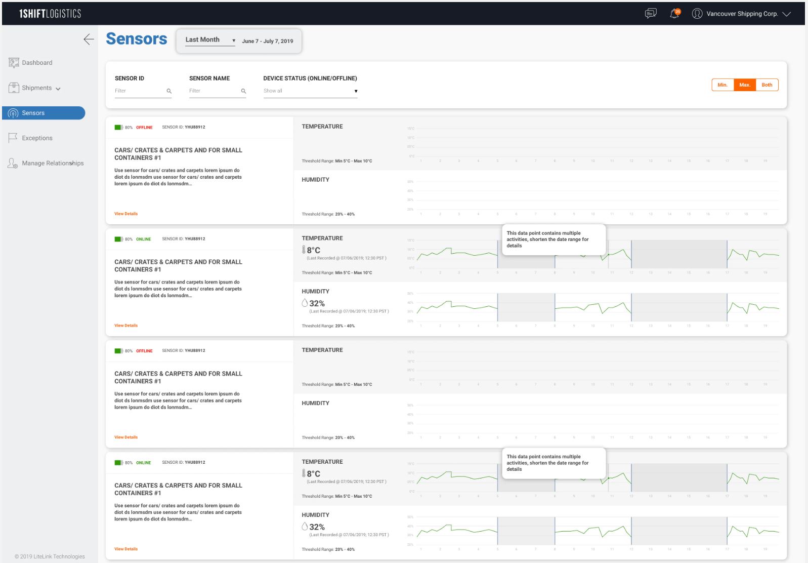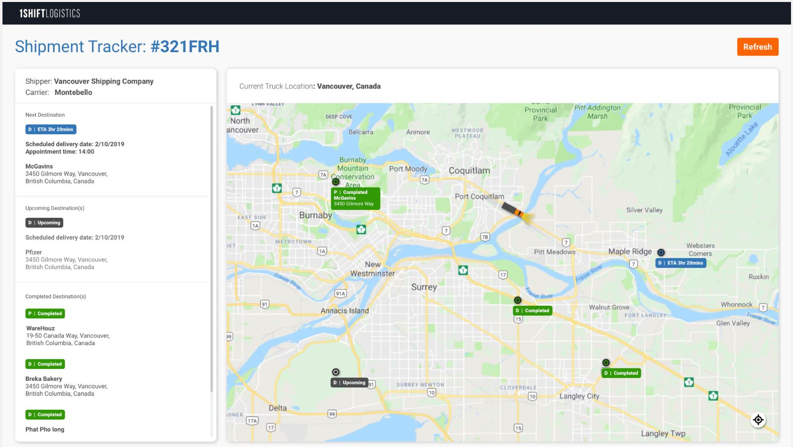 1SHIFT Logistics is a Freight Intelligence Management System. Manage your shipment efficiencies through the first, mid, or last mile with real time freight visibility, route optimization, environmental conditions (temperature, humidity, etc.), and much more! The 1SHIFT application is a cloud based solution that is quick and easy to sign up to. You will be able to gain real time visibility into your shipments to track and report problems back to dispatch. This reduces the need for manual calls between drivers and dispatch which means corrective action can take place quickly. Sensors can also be used for full cold chain management to track a variety of environmental conditions such as temperature and humidity. 1SHIFT also allows you to optimize the routes of shipments and truck capacity to ensure you are maximizing all of your assets. Your customers can have real time insight into their deliveries via an automated link which 1SHIFT can send to them on your behalf. Additional features include: a dashboard to gain insight into shipment metrics, ability to upload and manage proof of delivery (POD) and bill of lading (BOL) documents, fleet management for trucks out on the road.