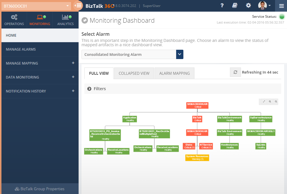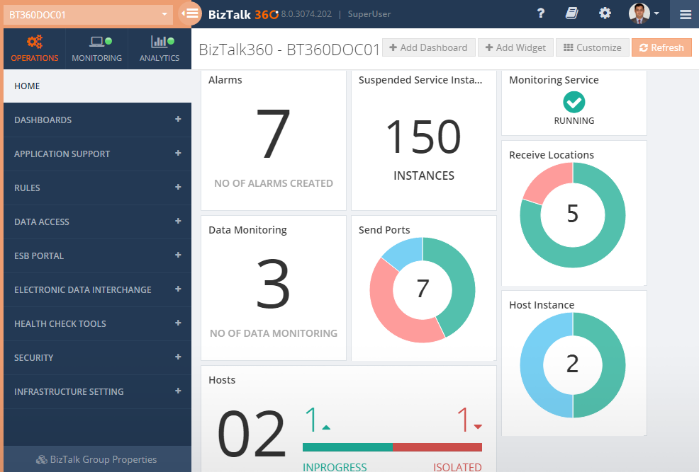 BizTalk360 addresses all the operational, administration and monitoring requirements of Microsoft BizTalk Server environments. It's a single pane of glass into your BizTalk Environments.