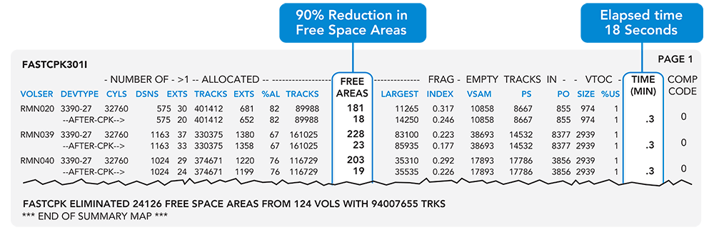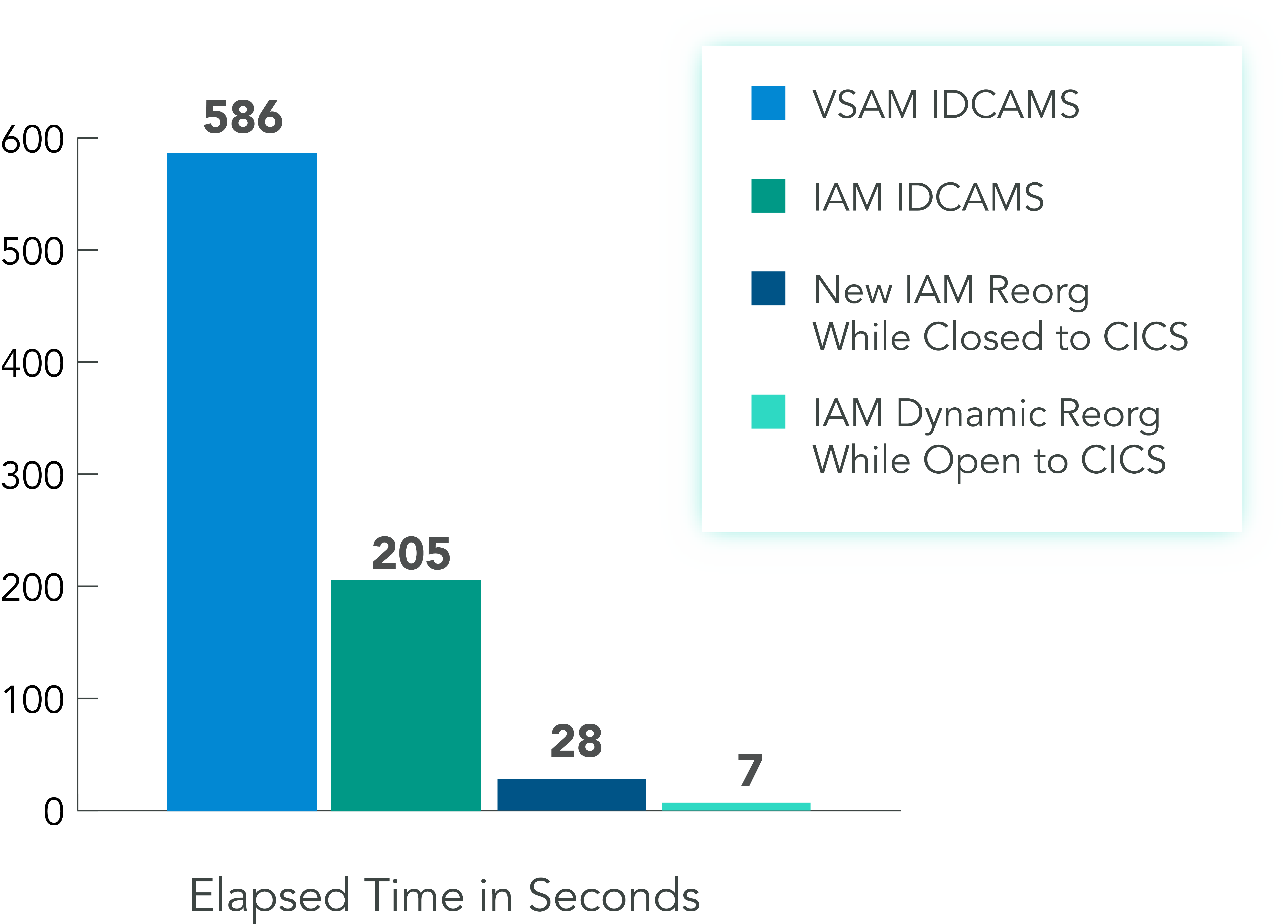 VSAM and Disk Performance Management To reduce data storage costs, enterprises need superior tools that maximize data storage capacity, reduce VSAM run time, improve CICS and batch performance and reduce CPU consumption. VSAM Performance A reliable, high-performance and transparent alternative to a VSAM Key-Sequenced Data Set (KSDS), a KSDS with Alternate Indexes, an Entry-Sequenced Data Set (ESDS) and a Relative Record Data Set (RRDS) that are commonly used by CICS online regions and Batch jobs. Has a proven track record to outperform VSAM by reducing the number of I/O operations resulting in reduced CPU time, elapsed time and response time. Lowers costs by exploiting 64-Bit storage for buffering and indexing resulting in significant CPU time reduction and improved elapsed time. Disk Reorganization Provides a VSAM data set reorganization solution that is fast, flexible and intelligent. Reorganizes VSAM KSDS, Alternate Index (AIX) files, and IAM and IAM AIX files. Given user-specifiable controls, a reorganization can be avoided altogether if the file will not benefit from reorganization. A simulation mode is provided to establish the selection criteria at just the right threshold. Provides data set reorganization for IAM files while data sets are open for updating in CICS regions. Updates that occur during the reorganization process are applied in a timely fashion after the reorganization is completed. Significantly faster than VSAM IDCAMs reorganization, providing a 20% to 60% reduction in wall clock, CPU time and I/O operations (EXCP) compared to VSAM IDCAMs. Disk Management Ensures storage volumes are operating at maximum performance and efficiency. Consolidates free space into one or two contiguous areas to ensure data set allocation is placed on the right disks with correct primary and secondary allocations. Merges extents from Sequential, PDS, PDSE, VSAM, and Extended Format VSAM data sets and releases all or part of the unused space.