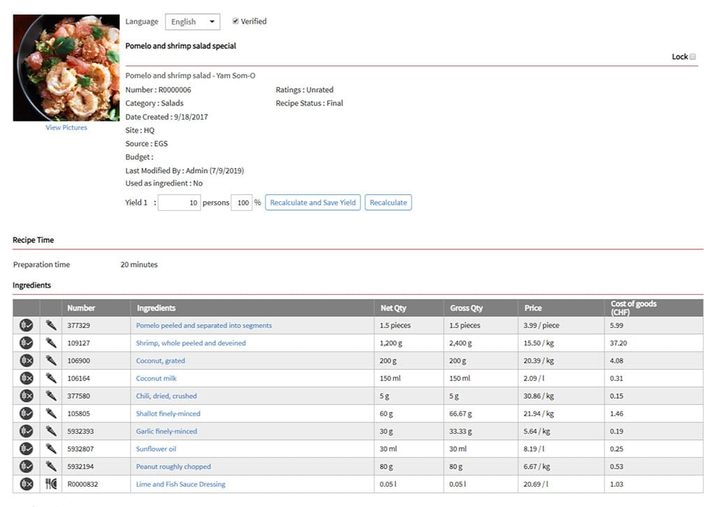 - Recipe Creation and Standardization