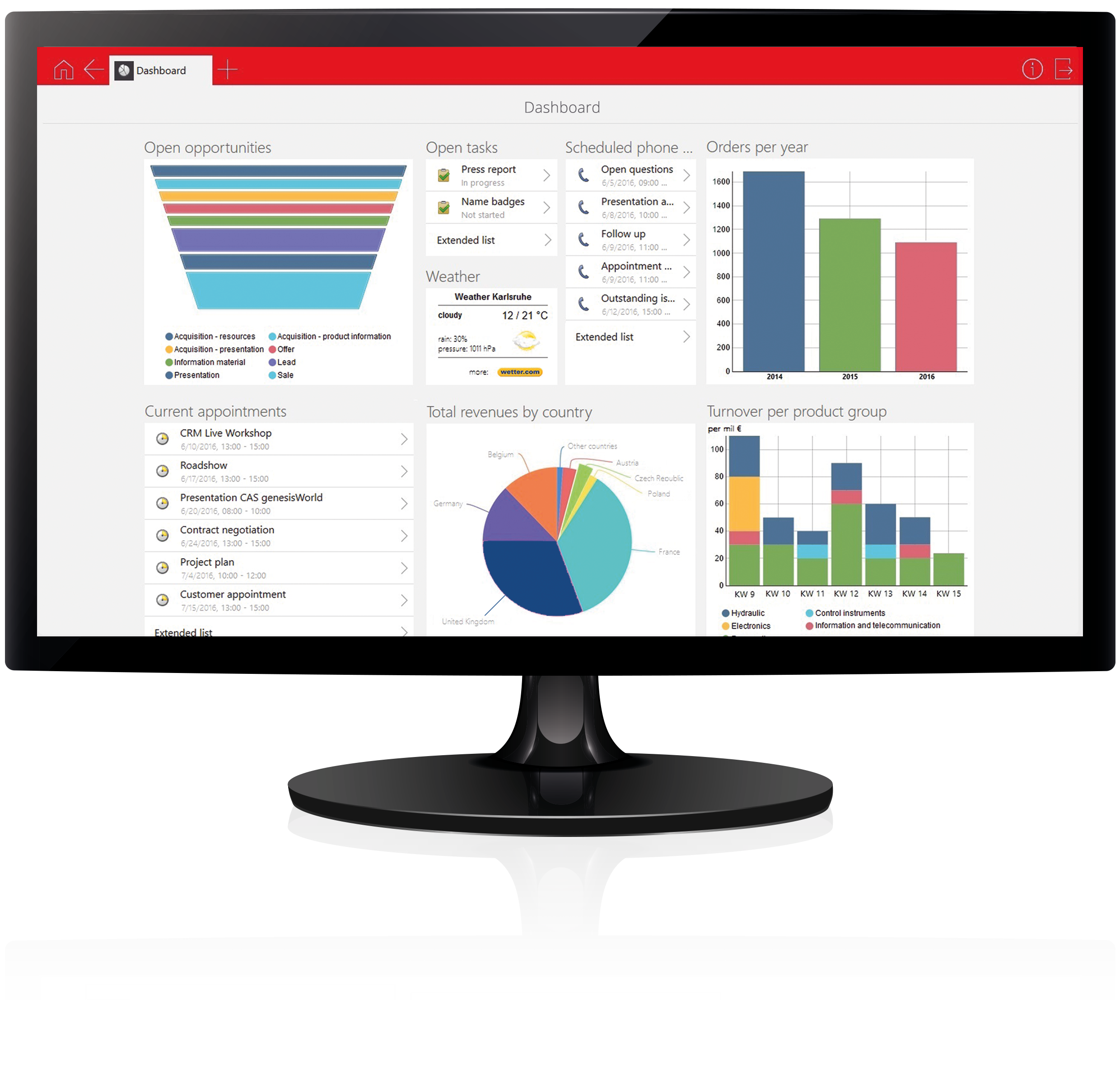 CAS genesisWorld is the complete customer relationship management solution. It's so flexible that it can be tailored precisely to your needs and so powerful that you can get started straightaway â CAS genesisWorld can be seamlessly extended as your business expands. A range of smart modules and interfaces means that there is a solution for every requirement. CRM means that you can concentrate on your core businesses, while CAS genesisWorld deals with your processes.