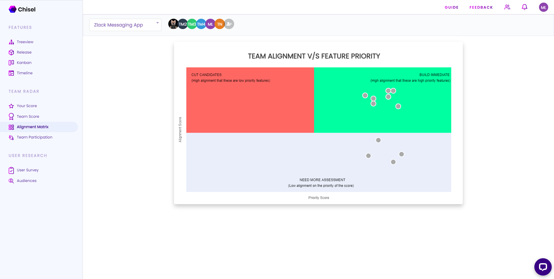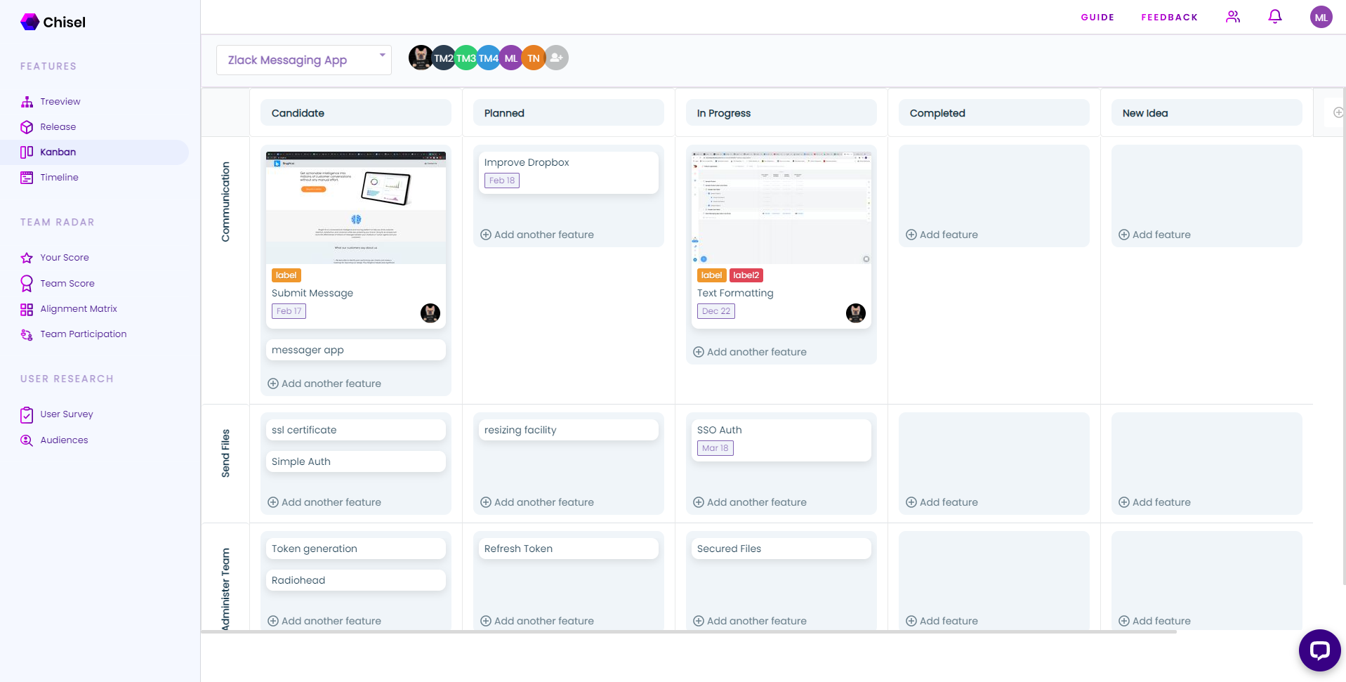 Chisel is a product management tool that brings together three pillars of Product Management: Product Roadmapping, Aligning The Team, and Customer Connection. Within Chisel, you can create a Product Roadmap, manage it on a Kanban board, ensure your team is aligned on the prioritization of specific features, and survey your potential customer on the features being worked on. Best of all, Chisel has a Free Forever version, which includes roadmapping and team alignment.