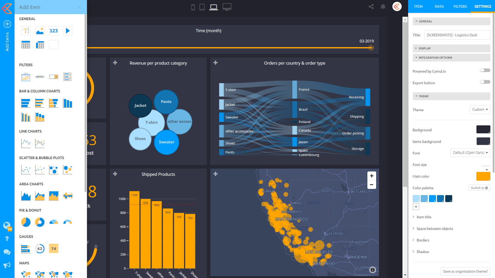 - Data Visualization: Cumul.io boasts a range of powerful data visualization tools that enable you to transform complex data sets into easily understandable visual representations. With an extensive library of charts, graphs, and maps, you can effectively communicate your insights to stakeholders.