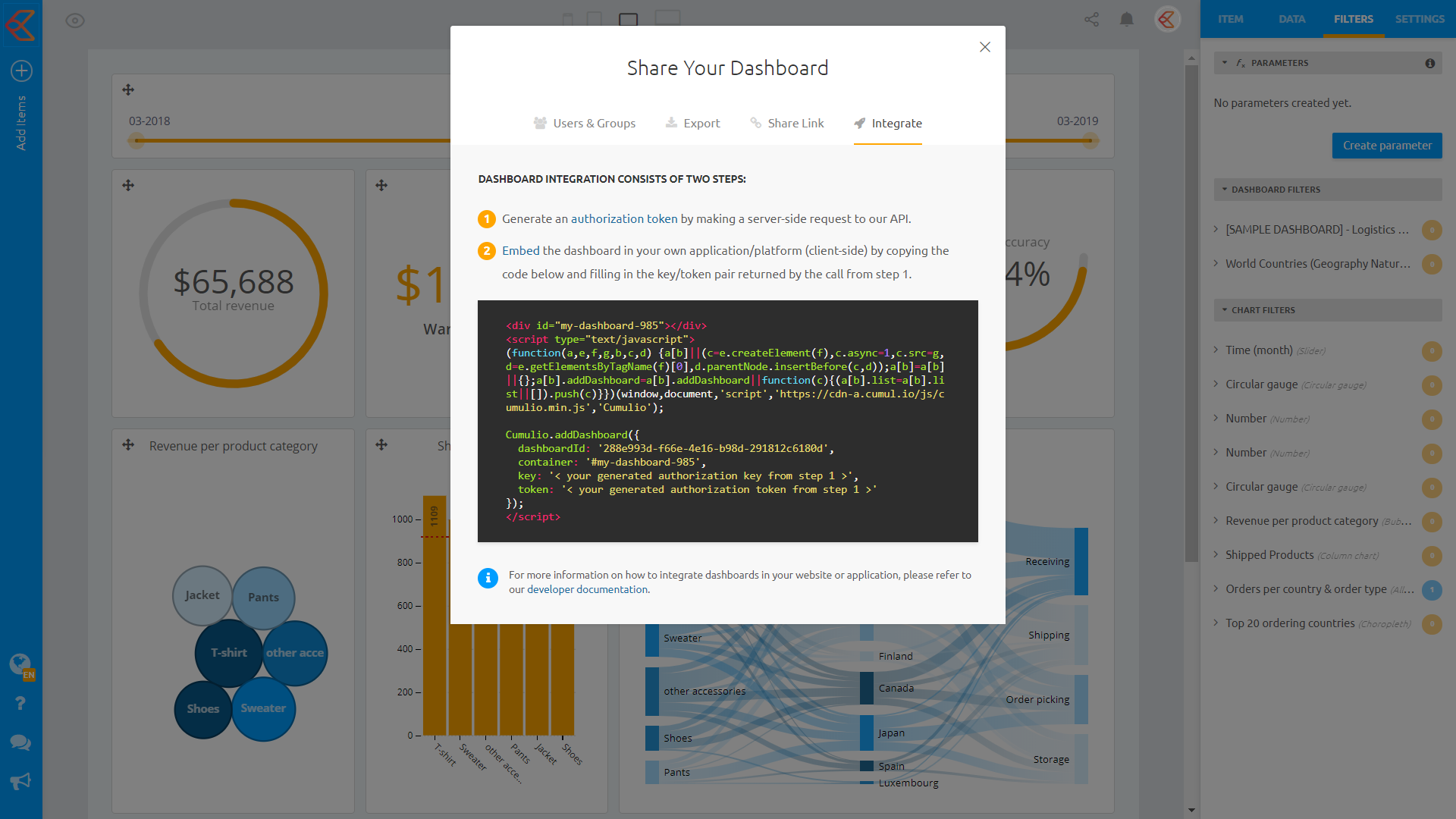- Collaboration: With Cumul.io, you can easily collaborate with your team members by sharing dashboards, reports, and insights. This promotes effective teamwork and ensures everyone has access to the same up-to-date information.