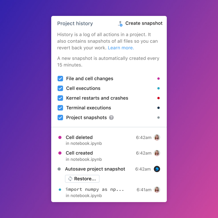 Deepnote shines brightest in its impeccable collaboration capabilities. As a cloud-based software, Deepnote makes it a breeze to collaborate with fellow developers, data scientists, and stakeholders. The platform allows multiple users to work simultaneously on the same project, facilitating seamless collaboration and real-time updates. The built-in version control system ensures that your team never loses track of its progress.