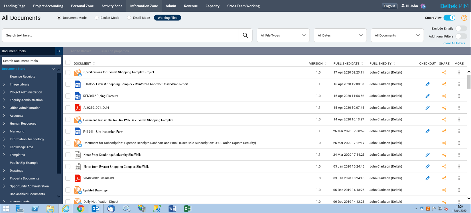 Empower your teams to be more efficient so they can spend more time on billable work. Specifically designed for the AEC industry, Deltek Project Information Management (PIM) is the one source of truth for corporate and project information, providing easy access to the latest versions of emails, documents and drawings.
