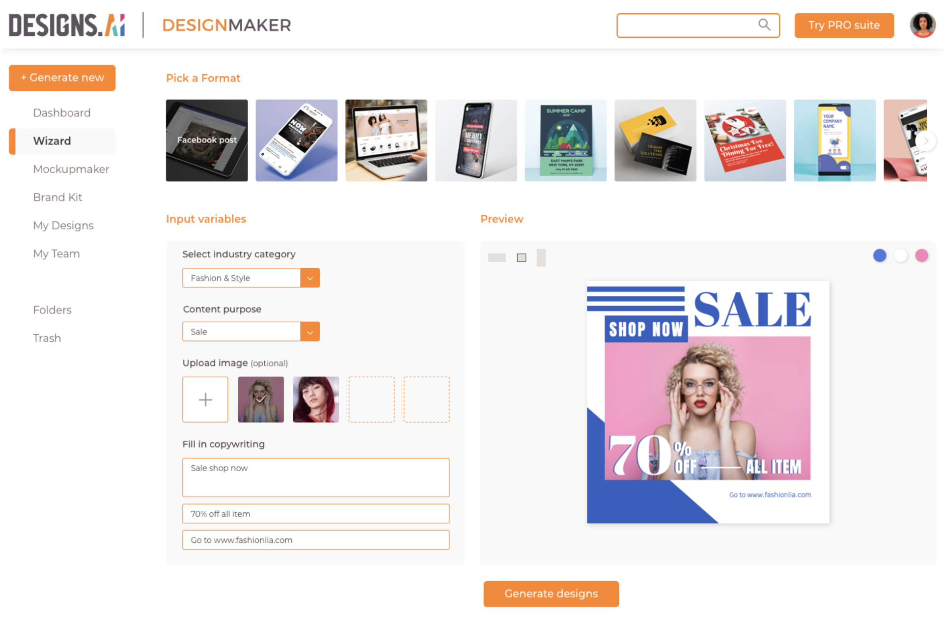 Designmaker is an intelligent design generator that connects inputted data with dynamic design templates to create stunning visual content.