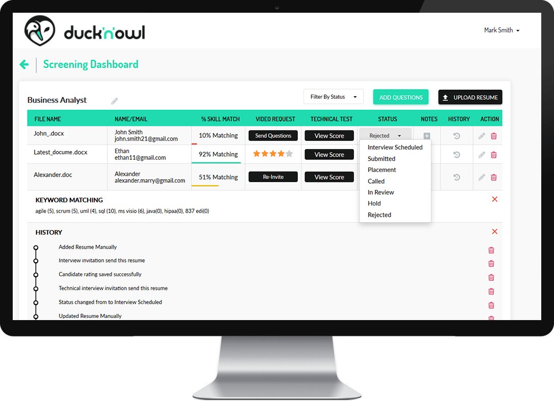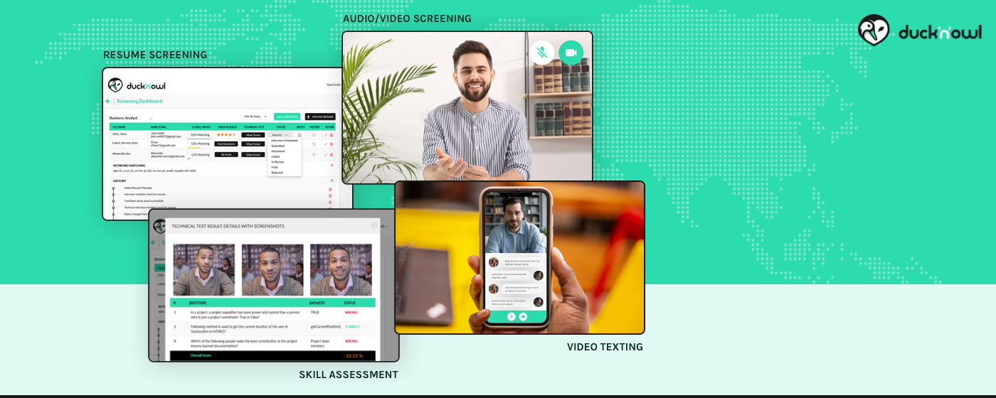 Ducknowl is a talent screening and assessment tool that helps recruiters and staffing agencies of all sizes efficiently identify top candidates. From one centralized location, the platform provides tools for video screenings, text message updates, AI proctoring, skill assessments, and word matching technology. With Ducknowl, hiring managers can easily access and manage all candidate data as well as schedule interviews based on schedule availability. This solution is designed to help recruiting teams save time while avoiding ghosting or under qualified candidates by allowing applicants to answer on their own time. Cutting-edge bait and switch prevention technology ensures applicants are well informed and screenings are accurate. Ducknowl integrates with ATS to make the screening process seamless.