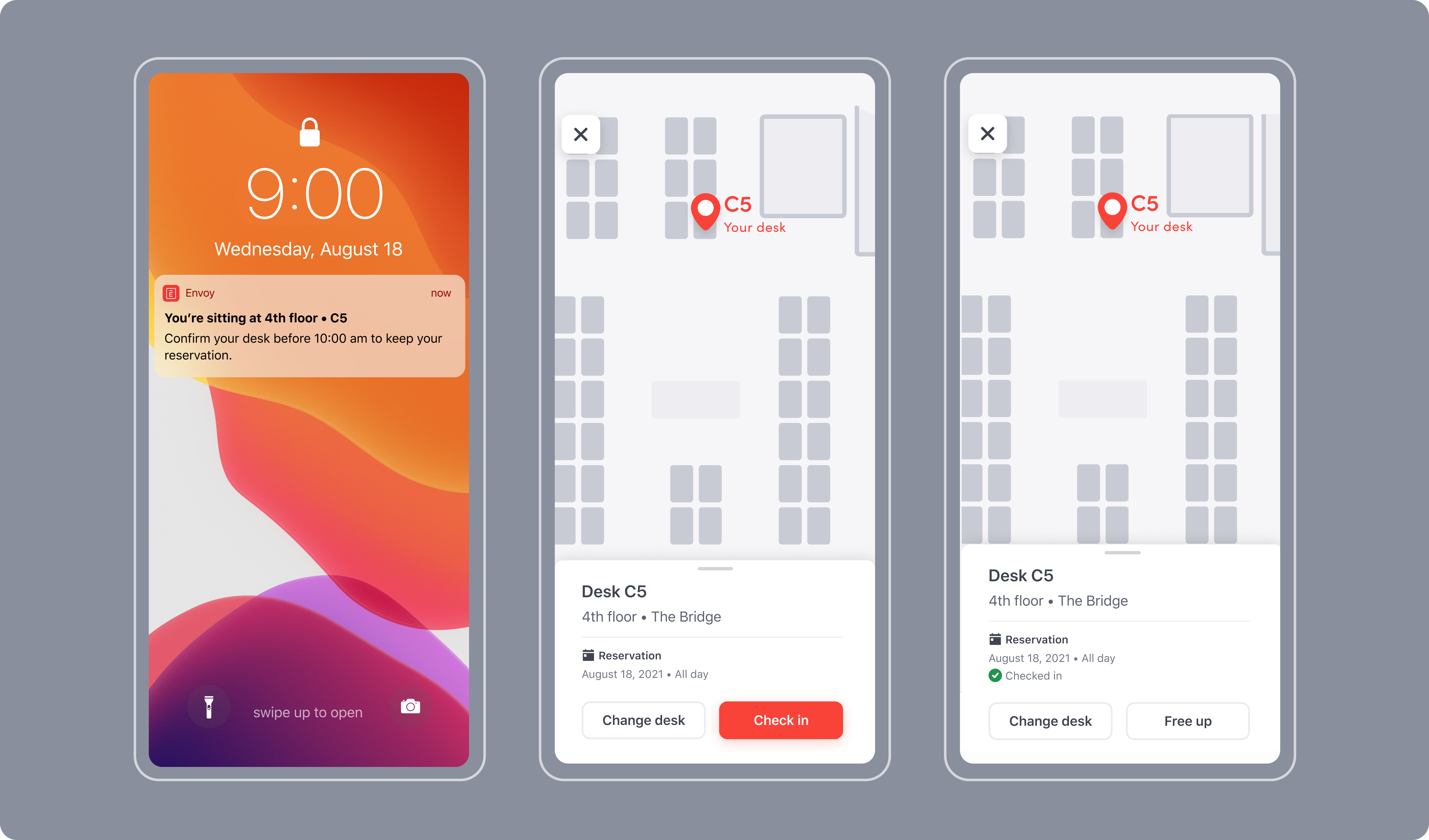 For employers, Desks offers a simple way to ensure teams can collaborate in person while keeping a safe distance. Envoy Desks is designed to support flexibility, especially as capacity and social distancing guidelines are changing. Desks analytics can help optimize workplace layouts by reconfiguring unused space, ultimately reducing the workplace footprint and lowering real estate costs. Analytics can also be used by after-hours cleaning crews to know which spaces to sanitize.