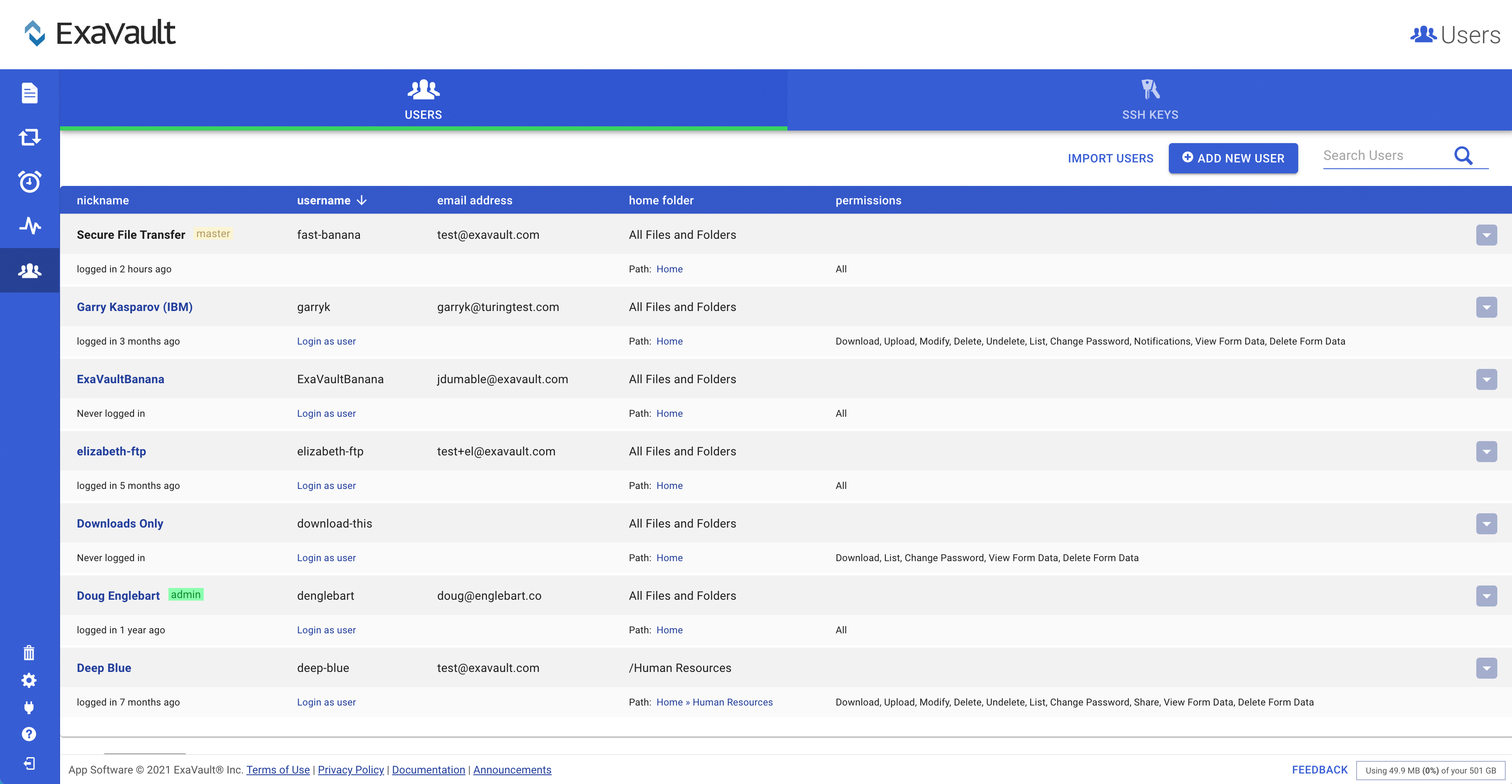 ExaVault Secure Cloud FTP platform lets you create a hosted FTP server in just seconds, with full support for manual and automated file transfers.