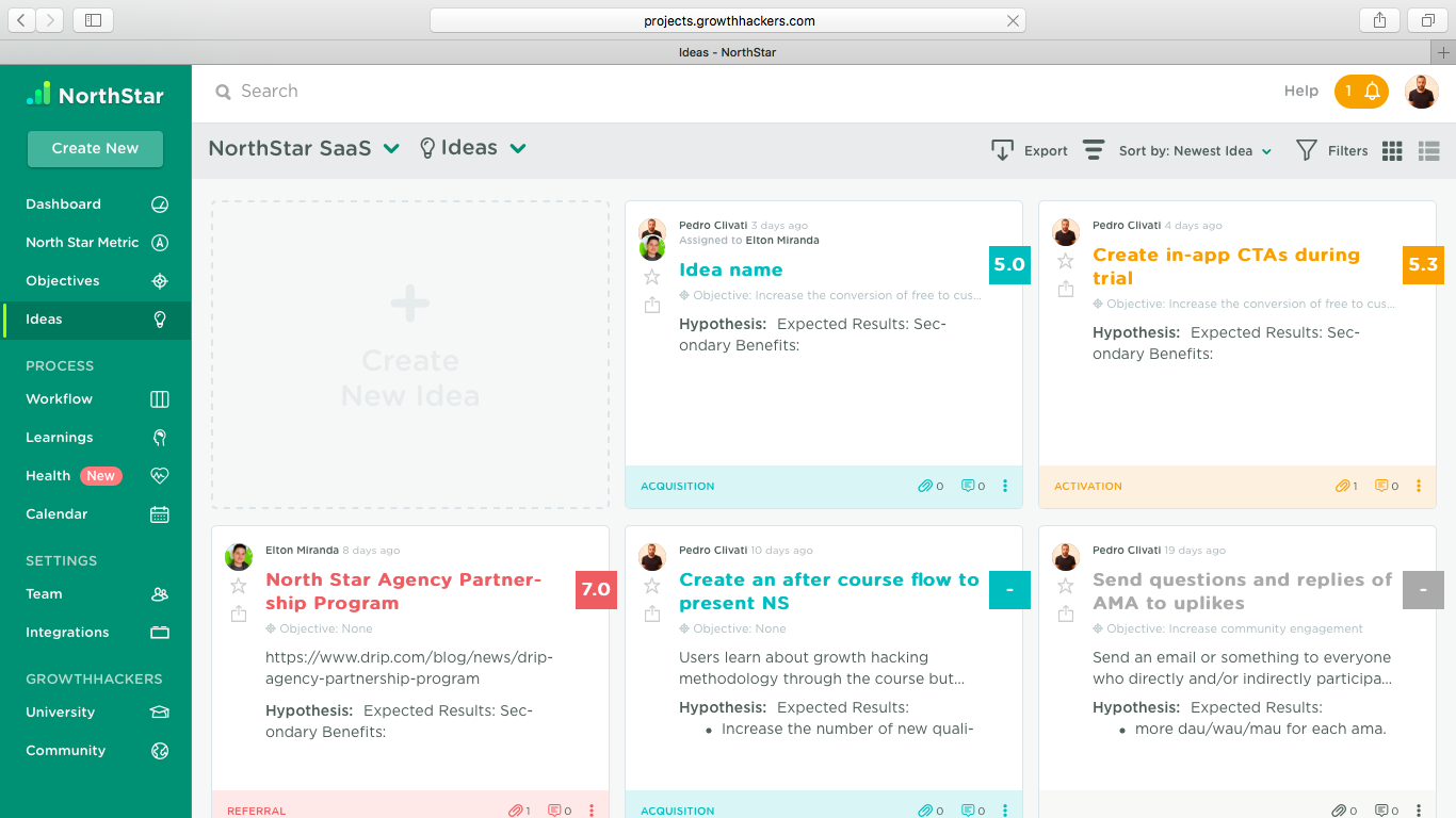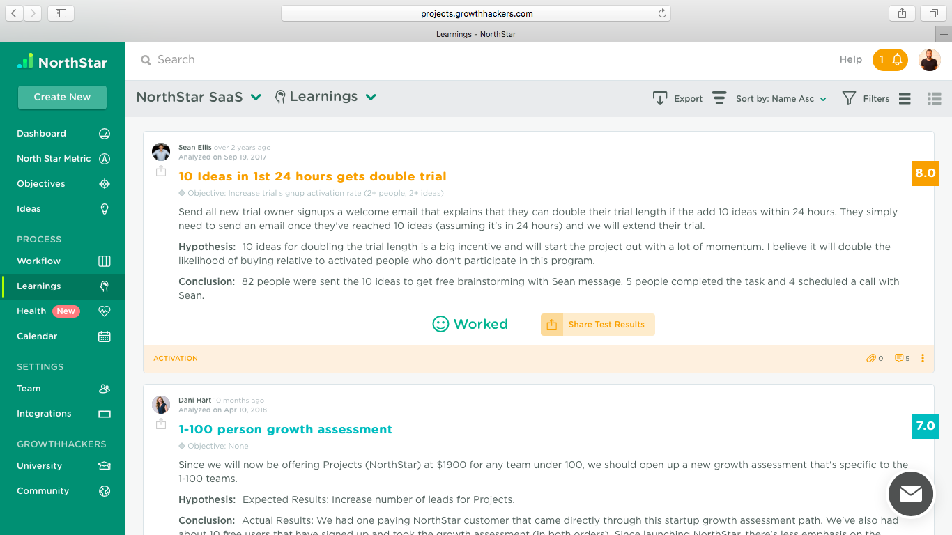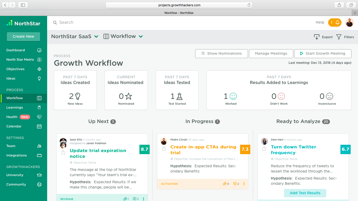 Software that helps teams work together to accelerate growth. NorthStar helps your team increase their learning velocity to quickly discover breakout growth opportunities. NorthStar also makes it easy to share and process learning so the entire organization can make a bigger impact on growth.