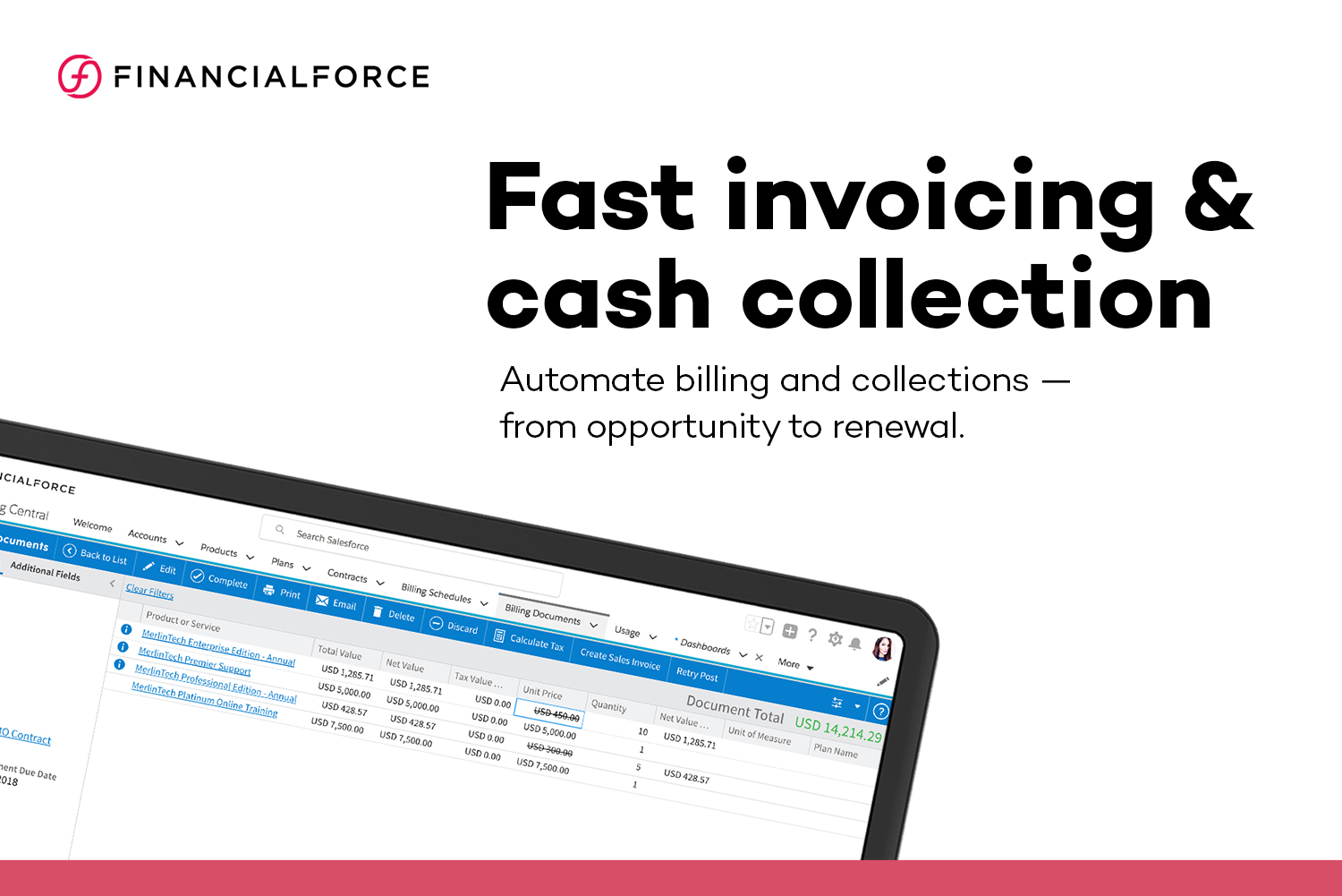 "The billing module of FinancialForce has revolutionized our invoicing efficiency. It's highly customizable and has significantly reduced errors and delays." - CFO, Professional Services Firm