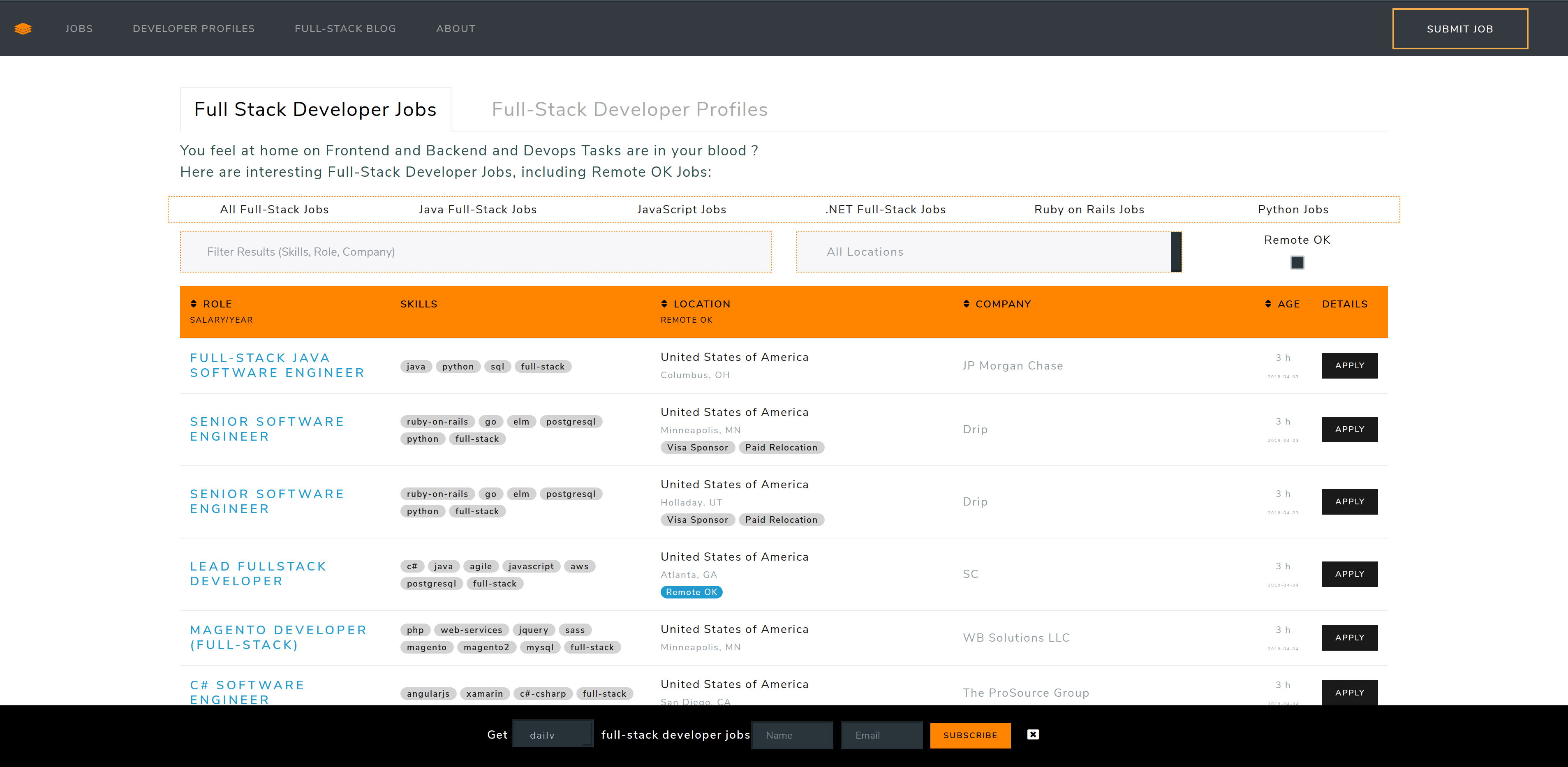Fullstackjob.com is a free service for Fullstack Developers looking for an interesting job as a Full-Stack Developer or Software Engineer. Companies can post they job positions for Full-Stack Programmers for free.