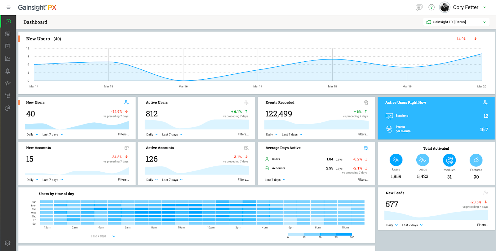 Gainsight PX provides a personalized product experience platform designed to help companies acquire, retain, and grow customers by creating real-time, personalized engagements driven by product usage data.