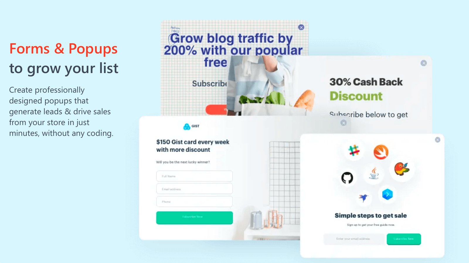 - Pop-Up Builder Software for creating impressive and targeted pop-ups.