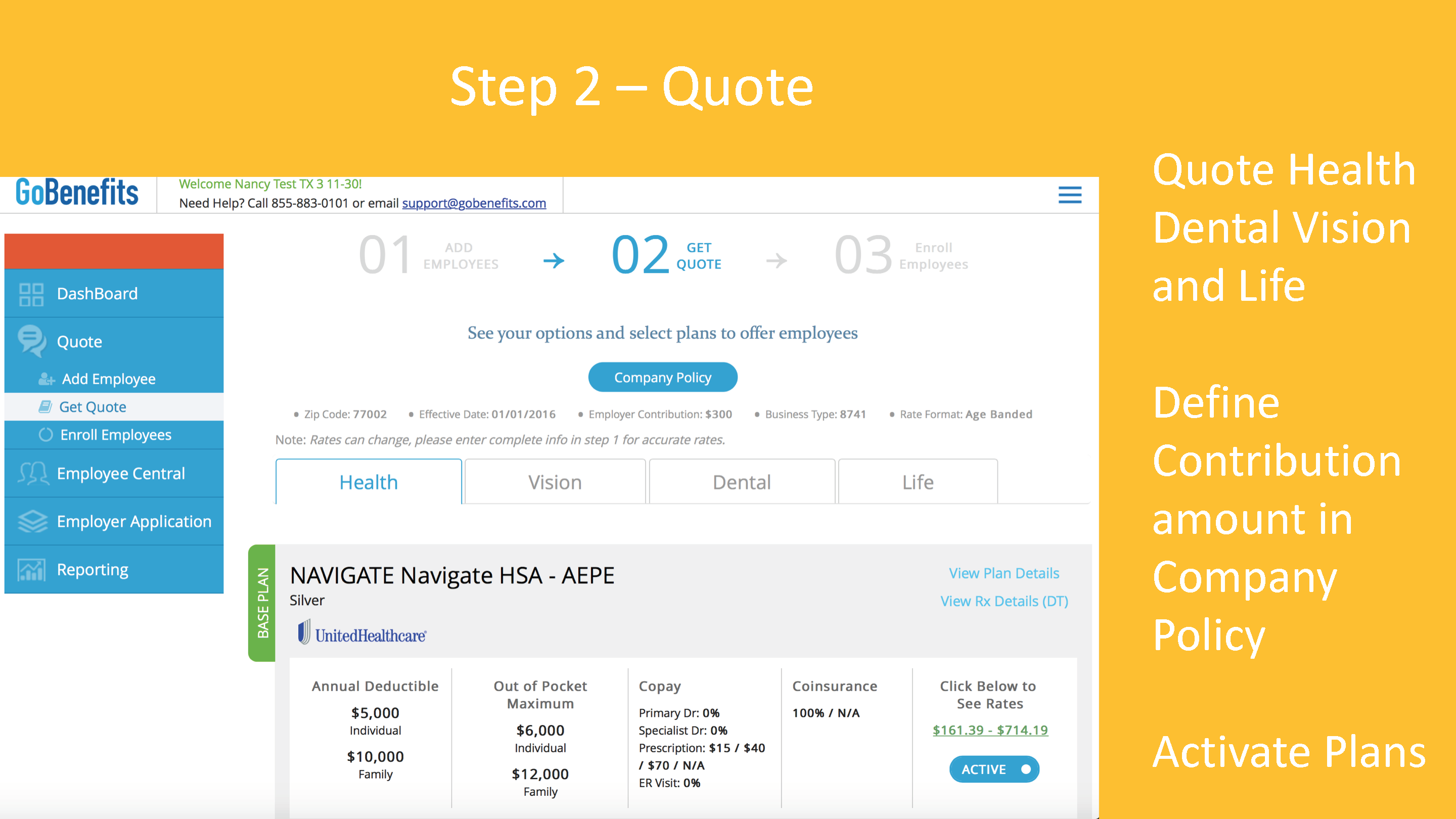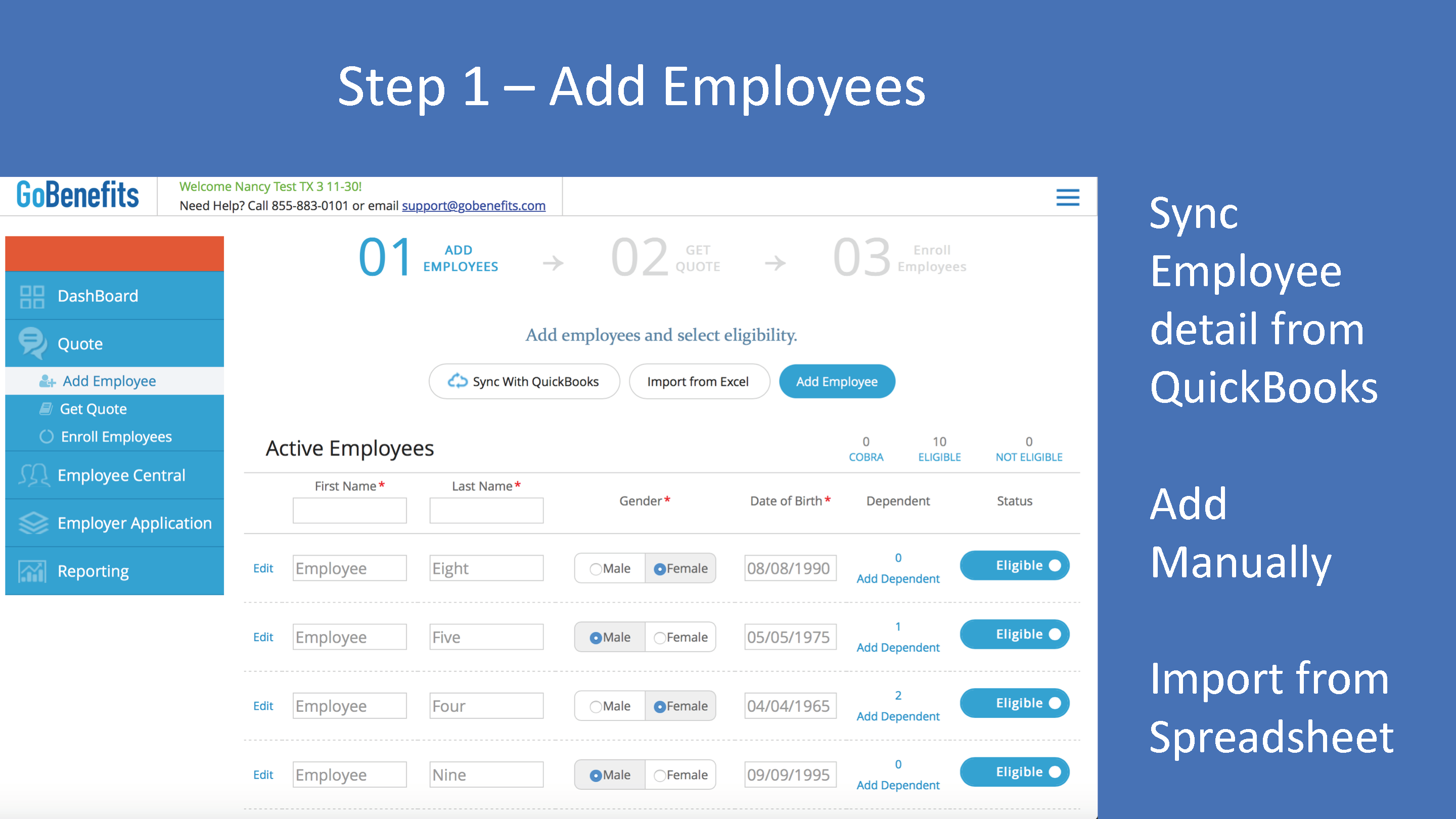 Get quotes, enroll employees, sync with QuickBooks, manage benefits, and provide employees with their own benefits portal, all in just minutes, and on one platform.