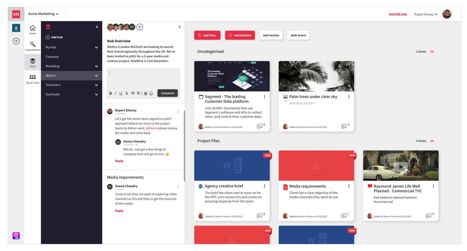 gruup is a future of work platform built with ideas and creativity at its heart. Teams bring together their best digital work, collaborate with others and wow audiences with personalised and dynamic presentations. Supported by real-time insight analytics they understand the work people care about, enabling them to craft the story and turn ideas into actions.