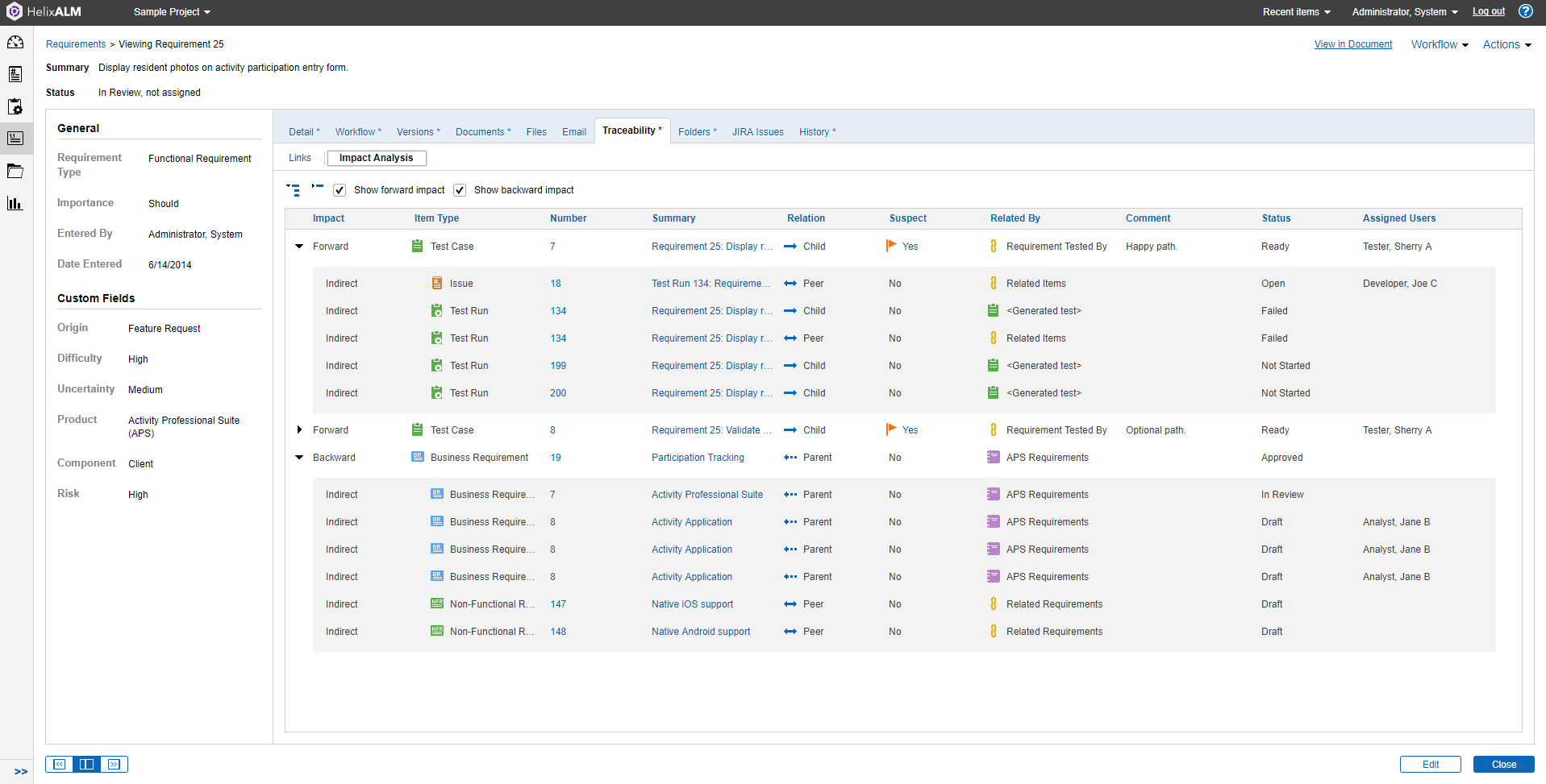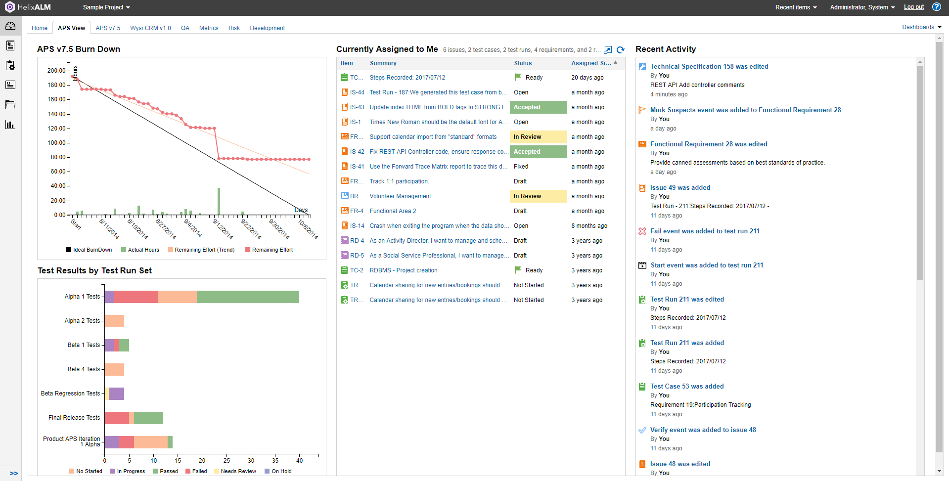 Helix ALM (formerly TestTrack) is an Agile project management suite that lets you centralize and manage requirements, user stories, test cases, issues, and other development artifacts â and their relationships. Its modular design allows you to buy only what you need: Helix RM for requirements management, Helix IM for issue management and Helix TCM for test case management. As you grow, seamlessly integrate the remaining modules for end-to-end coverage and traceability. Helix ALM also smoothly integrates with JIRA.