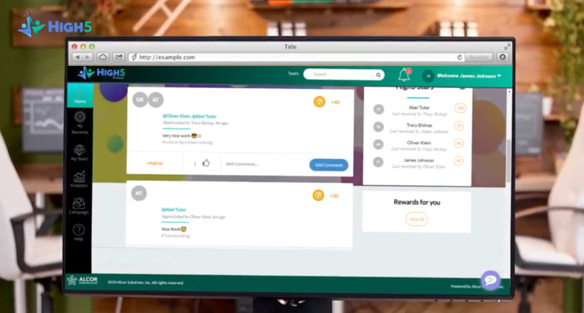High5 is an Employee Reward & Recognition solution which helps organizations streamline their employee appreciation process and connect all employees on one user-friendly platform! High5 is an fully automated, seamless and collaborative platform that makes the employee appreciation and recognition process easy. This solution is aimed to create appreciative workplace culture, improve morale, unite employees and teams, retain employeesâ long term and motivate them to accomplish more! With customized appearances, automated birthday & anniversary recognition features, streamlined internal campaigns for engaging employees and multiple pricing options, this platform becomes a great solution for businesses of all sizes.