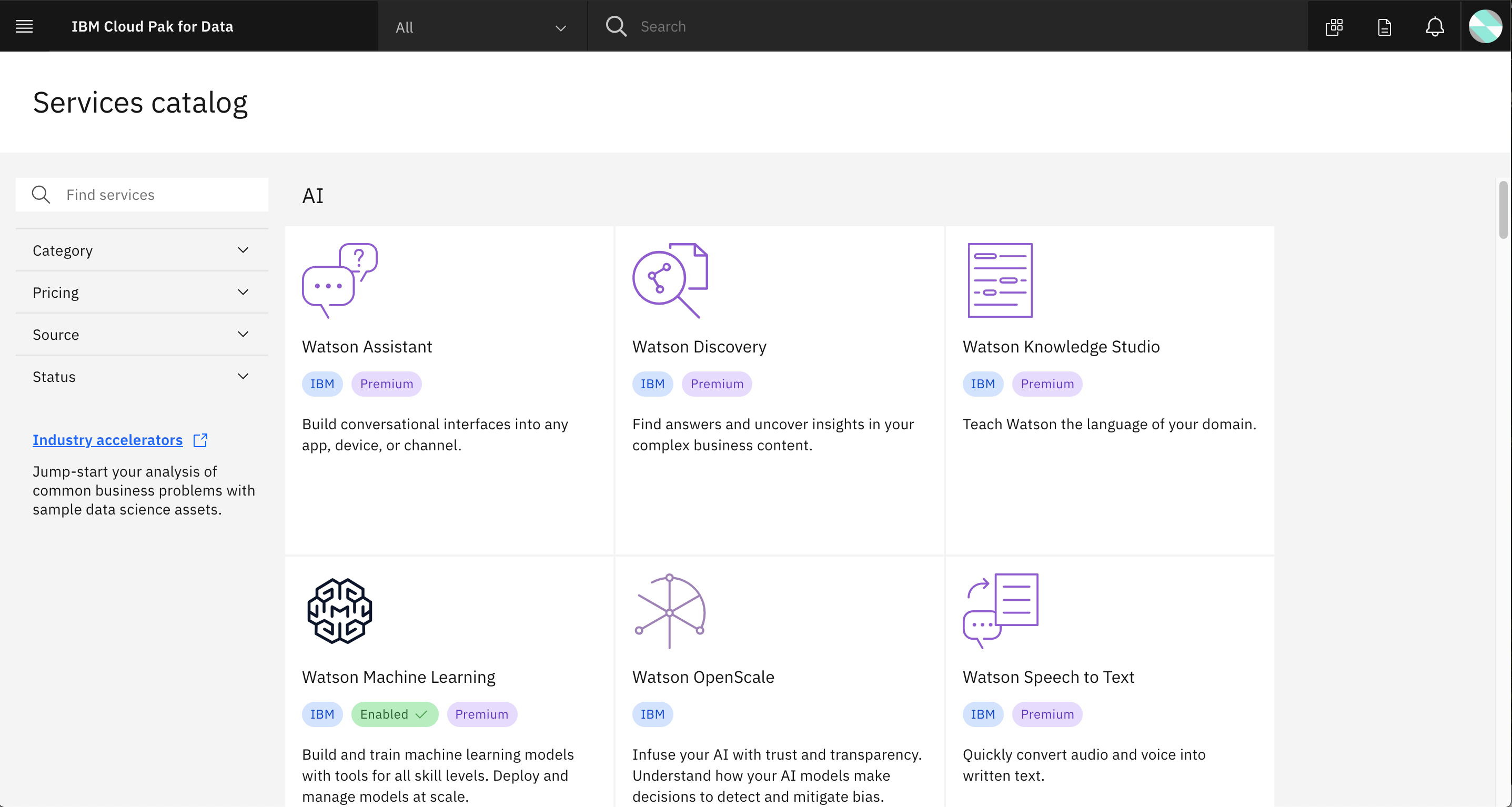 Your AI is only as good as the data that feeds it. With IBM Cloud Pak for Data, you can make your data ready for an AI and multi-cloud world and access an array of IBM Watson technologies at your fingertips. Rapidly provision services for data scientists, data engineers and developers so they can work faster than ever. Simplify hybrid data management, unified data governance and integration, data science and business analytics with a single solution.