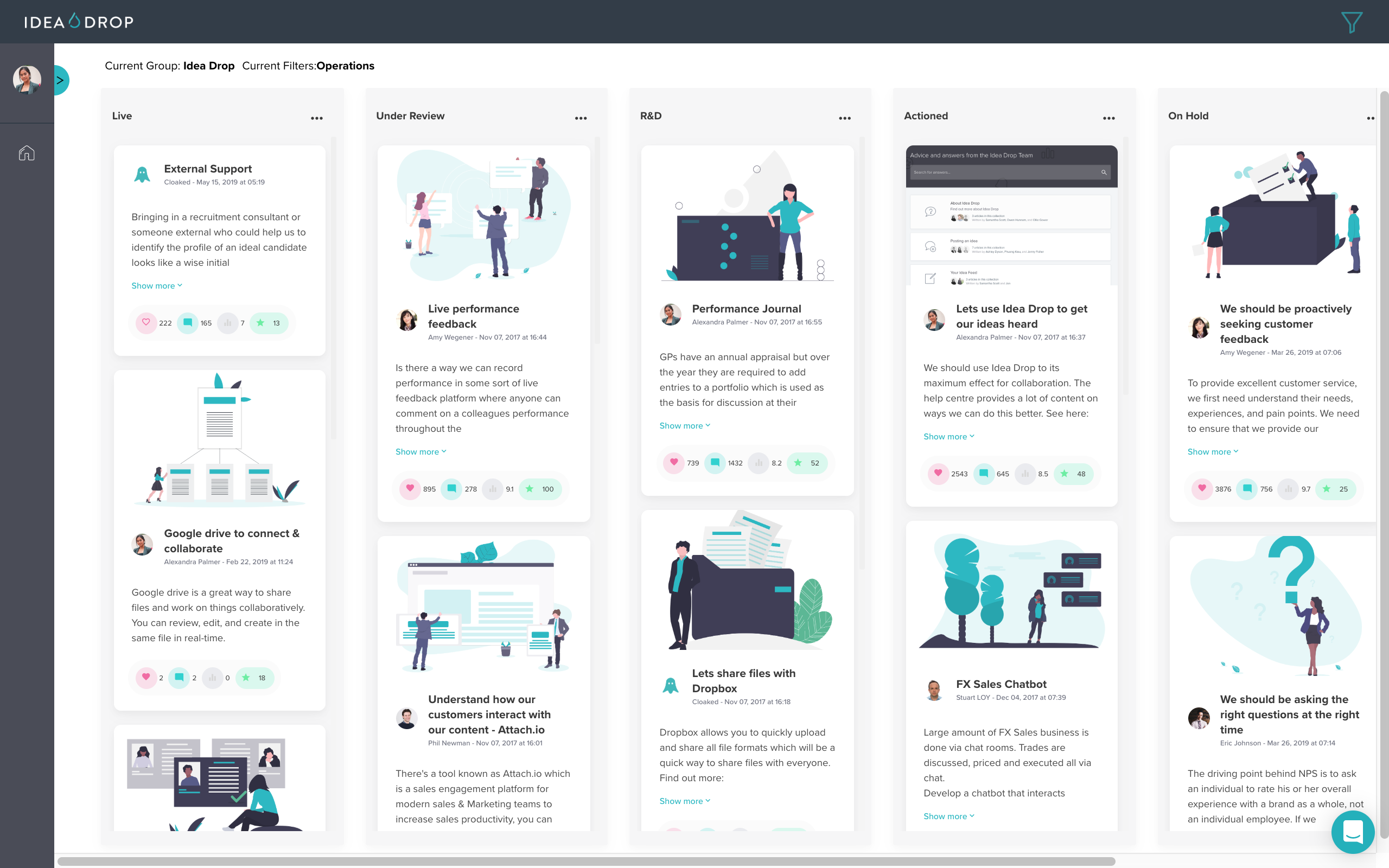 - Idea Evaluation and Ranking: Idea Drop enables users to evaluate and rate ideas, allowing for a systematic approach in determining the most valuable ideas. This feature helps organizations prioritize and implement impactful ideas effectively.