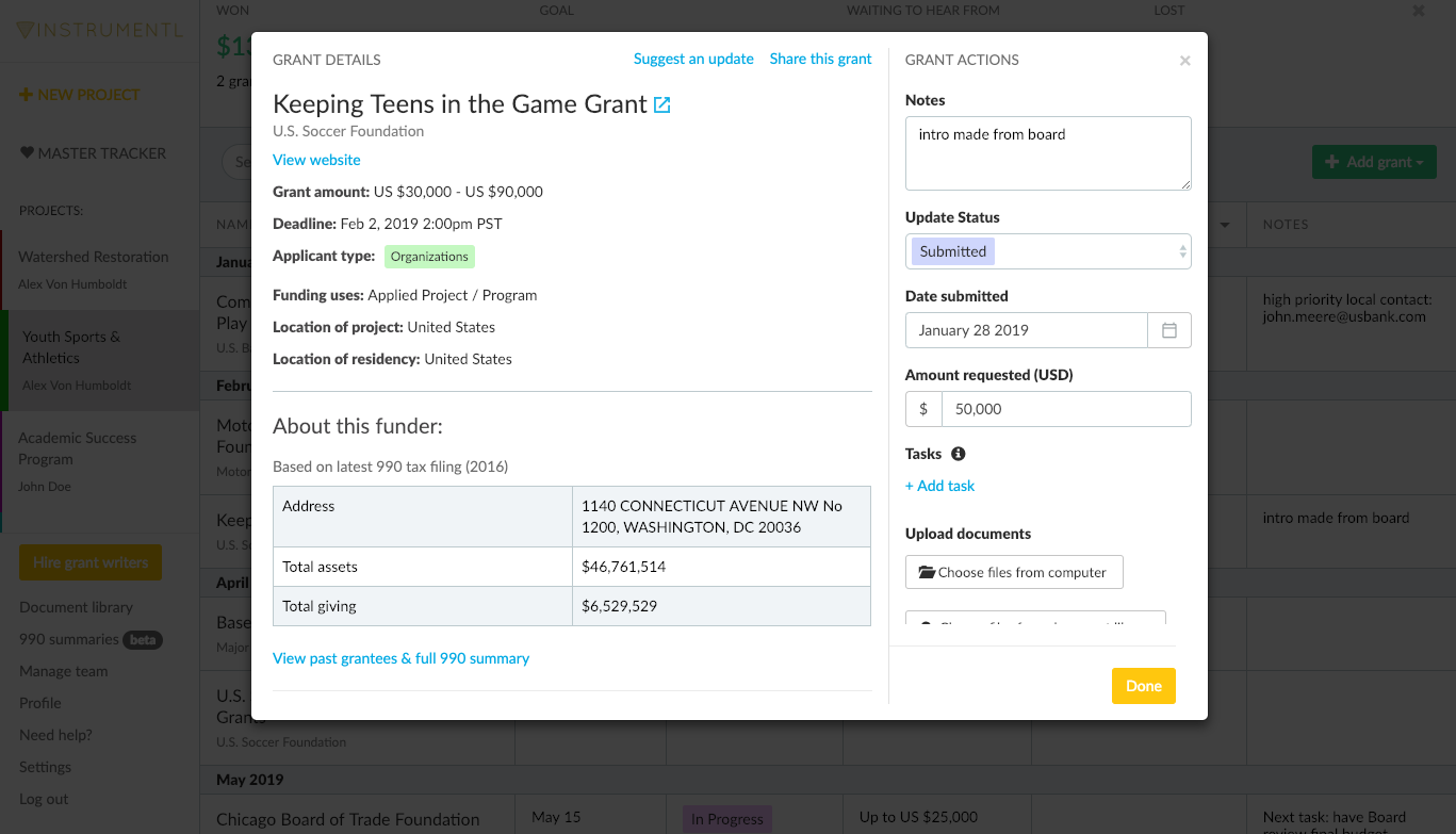 In conclusion, Instrumentl is a highly efficient and user-friendly saas app that offers powerful grant management and donor prospect research capabilities. With its user-friendly interface, comprehensive features, and robust analytics, Instrumentl is a valuable tool for organizations and individuals looking to enhance their fundraising efforts and streamline their grant management processes.