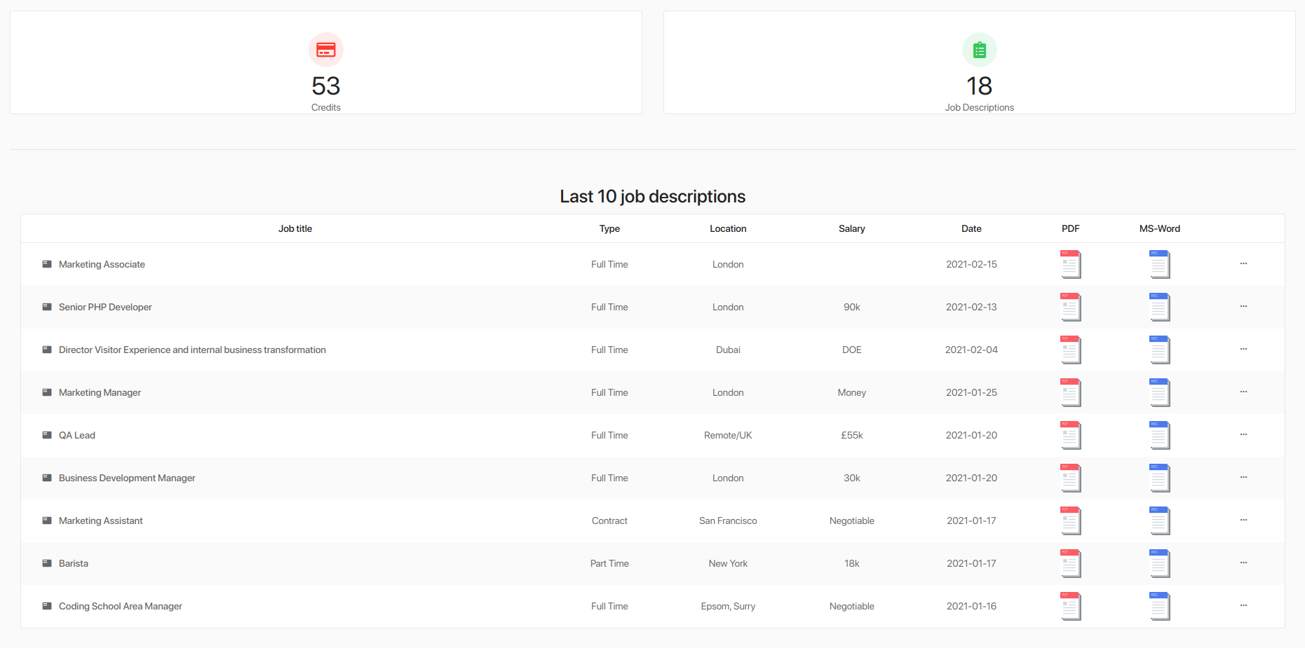 - Automatic job description generation