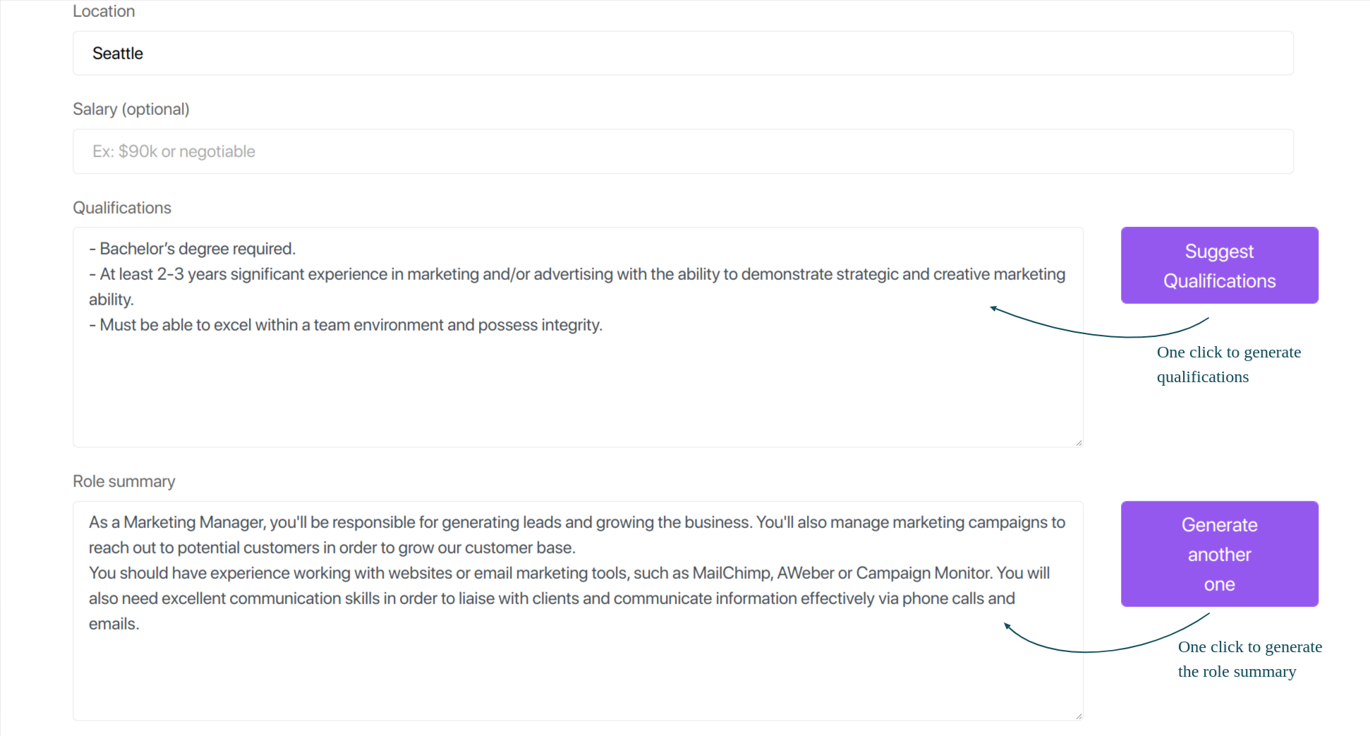 - Automatically generate job descriptions tailored to specific roles and industries