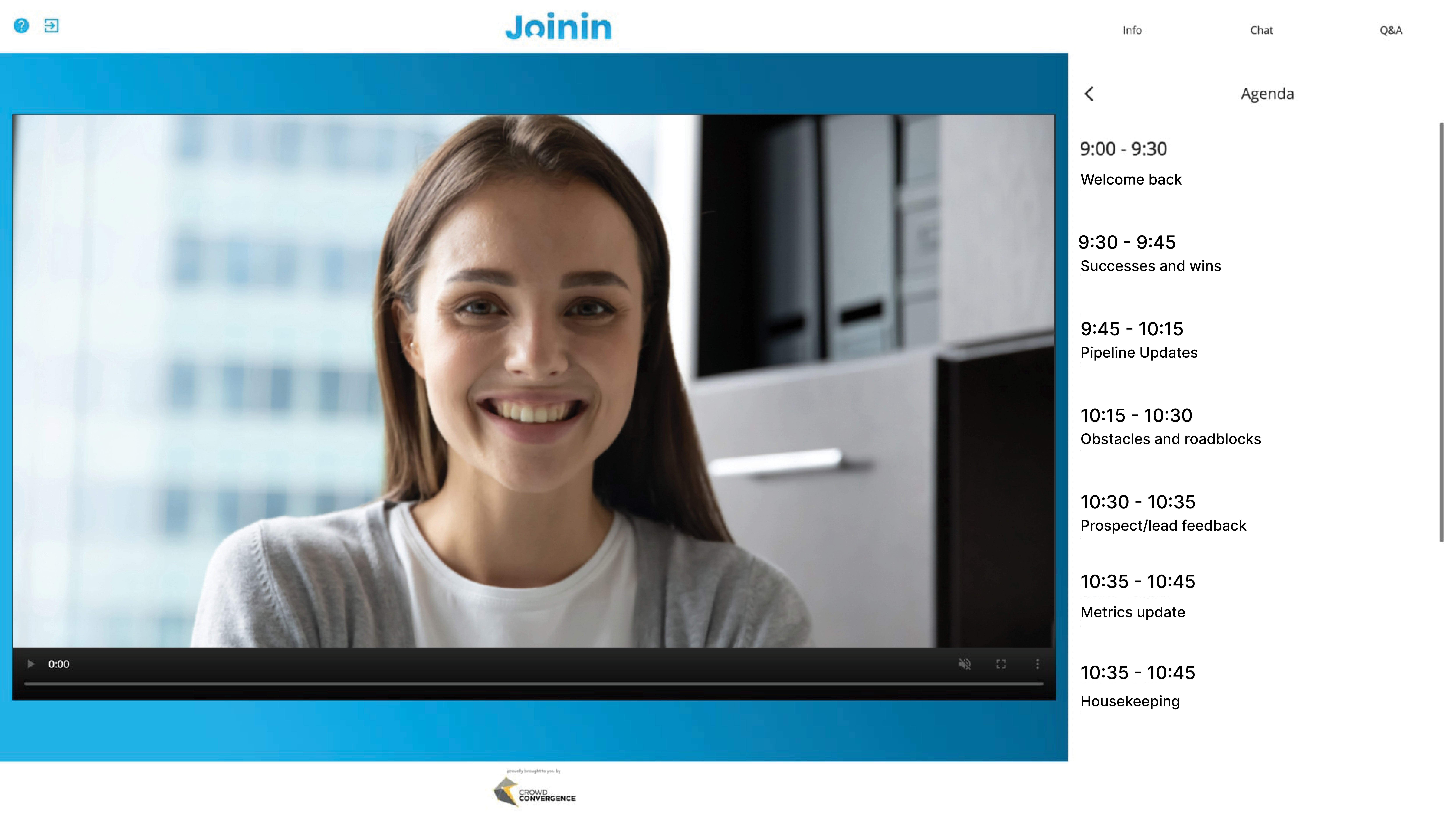 Joinin is an all-in-one, cost-effective, fully customisable and simple online event platform for the management and delivery of online events. It provides everything you need to organise and host an amazing, customised online event all in one platform, with flexible pricing models to suit your budget.
