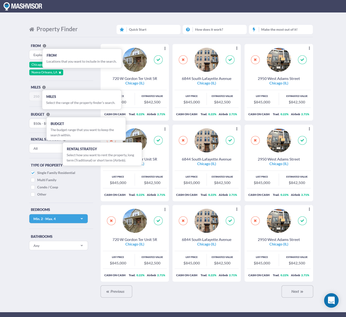 - Rental Property Search: Mashvisor simplifies the process of finding investment properties by offering a comprehensive search feature. Users can filter properties based on location, budget, rental income, and other criteria to find and evaluate the most suitable options for their investment goals.