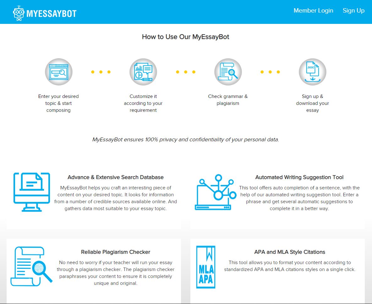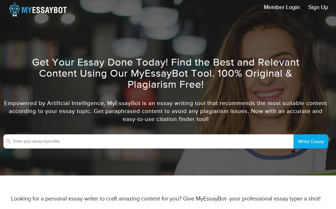 MyEssaybot is an advance AI writing tool to write essays with the best and relevant content based on any topic. It is equipped with a reliable plagiarism & grammar checker along with a citation finder tool to write your essays with perfection and quality.