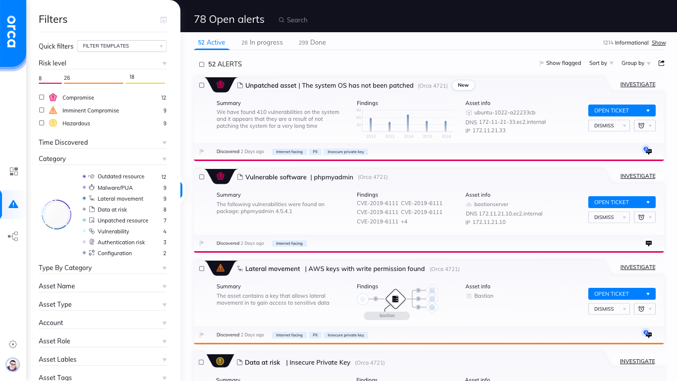 Get workload-level visibility into AWS, Azure, and GCP without the operational costs of agents. You could buy three tools instead⦠but why? Orca replaces legacy vulnerability assessment tools, CSPM, and CWPP. Deploys in minutes, not months.