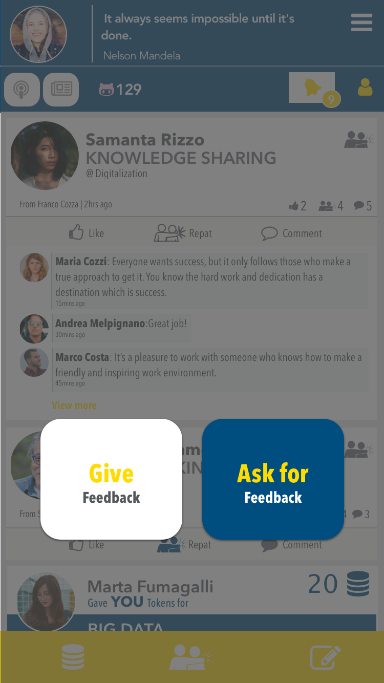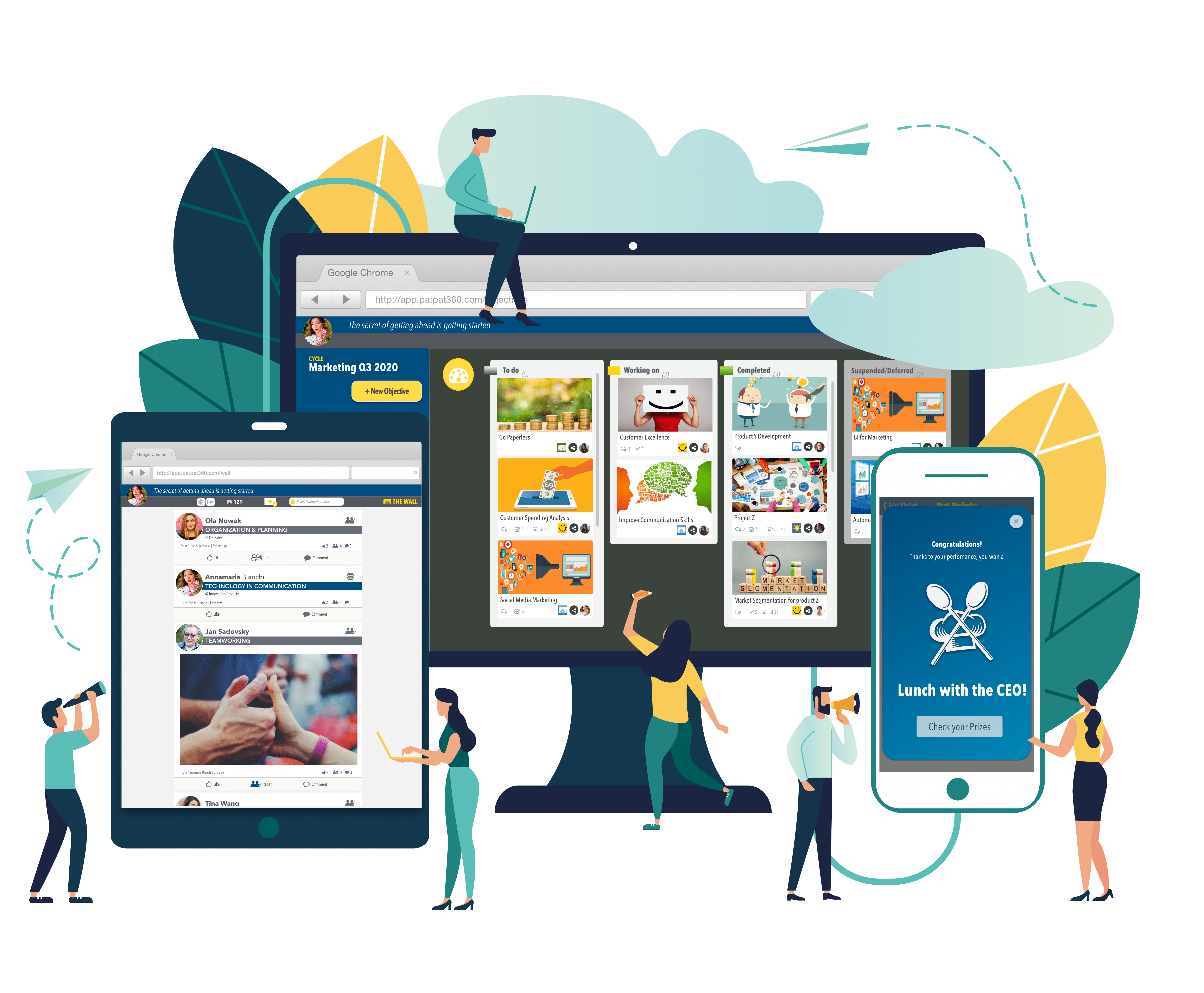 PatPat360 goes beyond traditional Performance Evaluation tools offering a New Management Model: PatPat360 is the solution to implement small improvements that radically increase Productivity and Cooperation at work, wherever they are Thanks to PatPat360 is possible to strengthen people organizational behaviors towards stronger engagement and cooperation