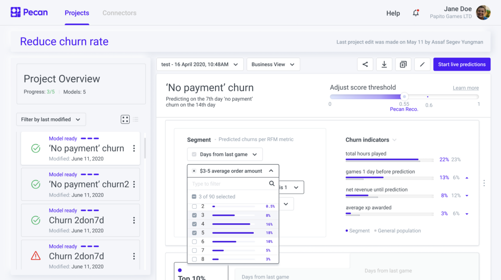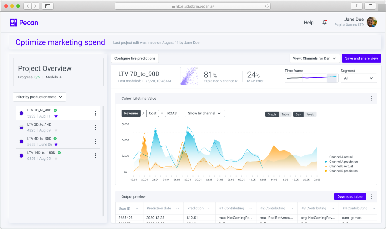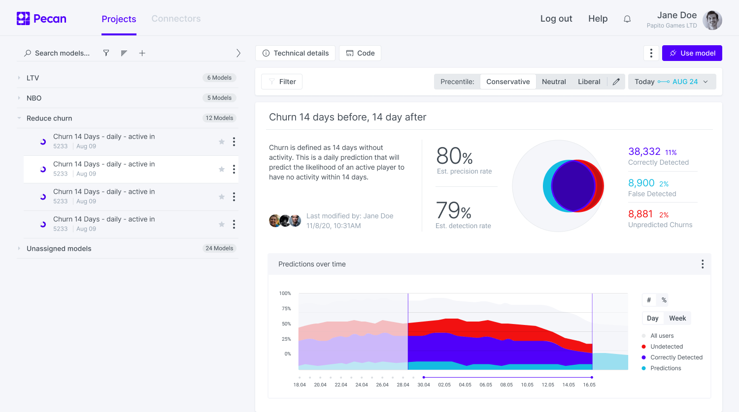 Pecan helps business intelligence, operations, and revenue teams predict mission-critical outcomes. As the world’s only low-code predictive analytics and data science platform, Pecan enables companies to harness the full power of AI and predictive modeling without requiring any data scientists or data engineers on staff.