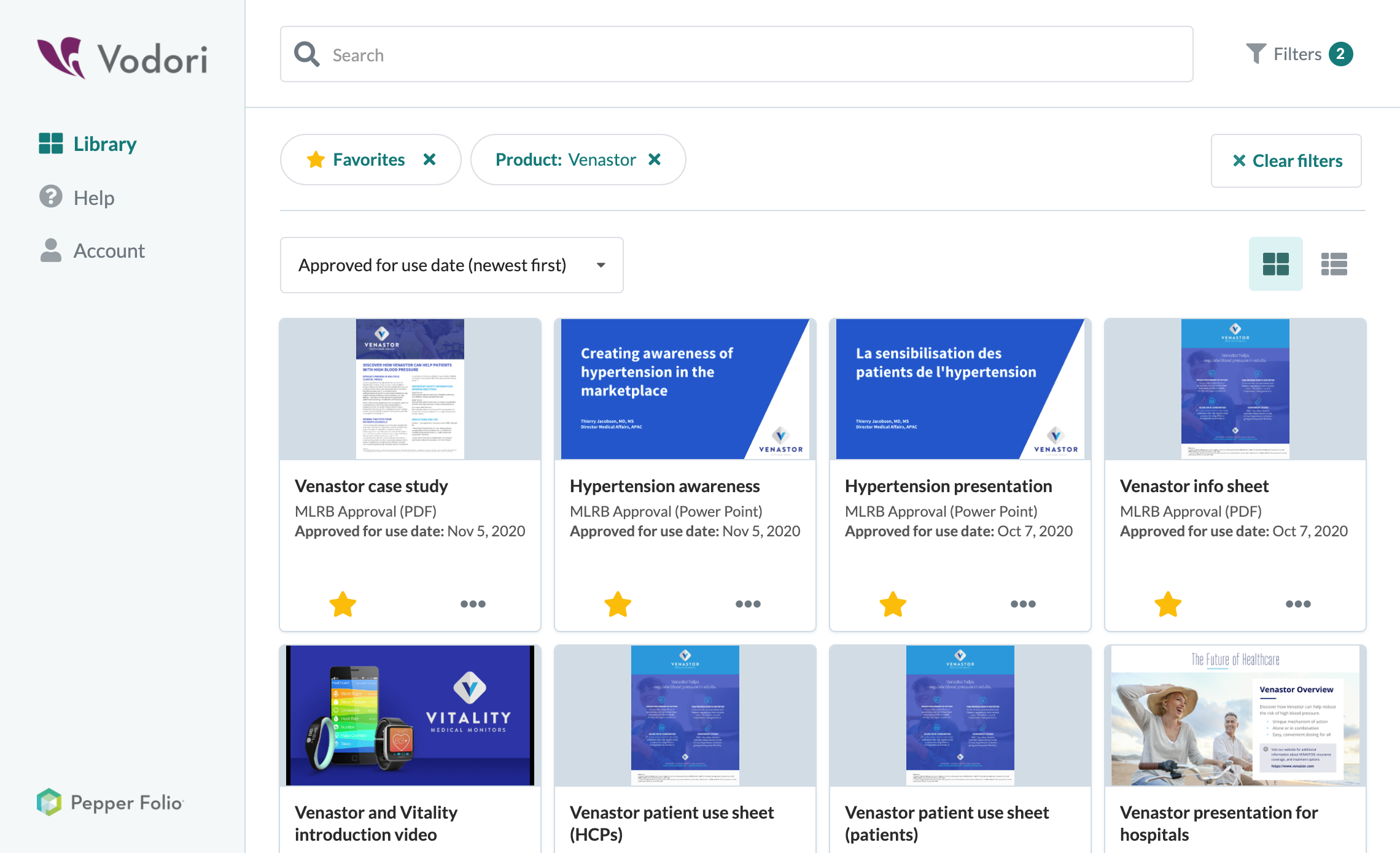 Pepper Folio® is a modern sales and MSL enablement solution that provides easy, tailored access to on-brand, approved content. With Pepper Folio, commercial and medical teams can seamlessly view and retrieve the appropriate content they need to engage key stakeholders. Features include Permission-based access, document expiration, shareable digital content collections, and content usage metrics.