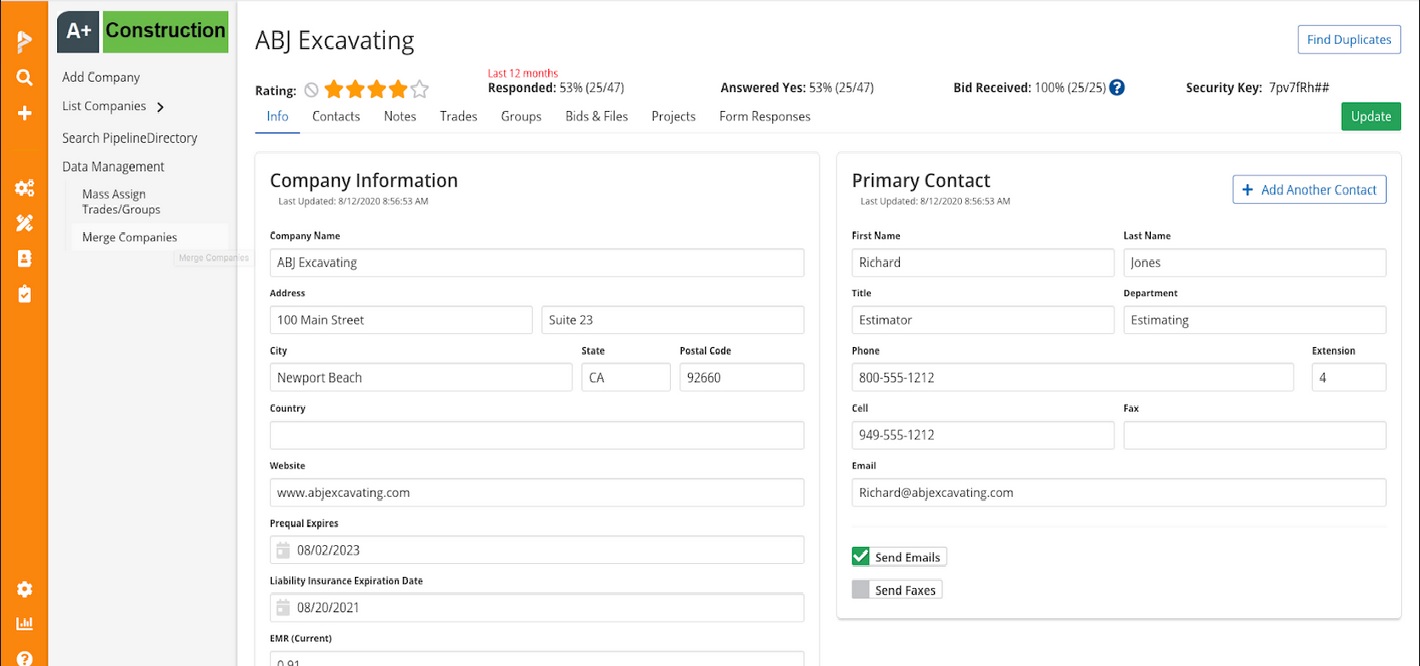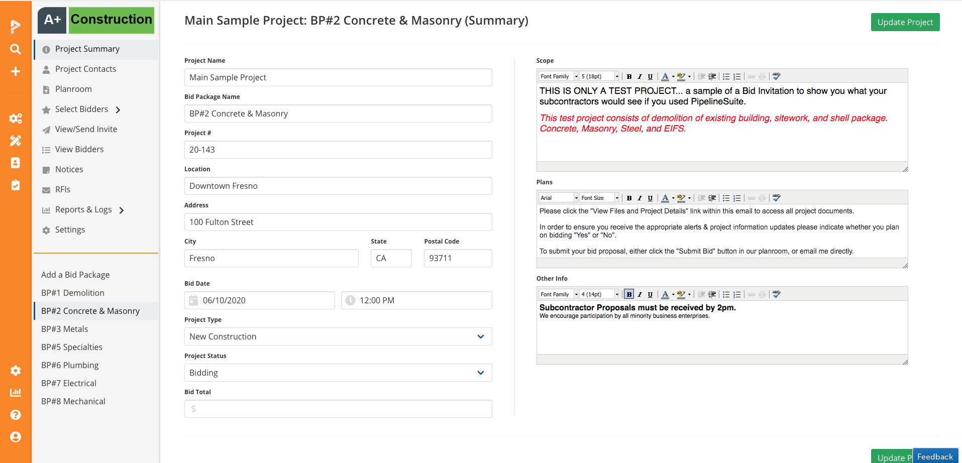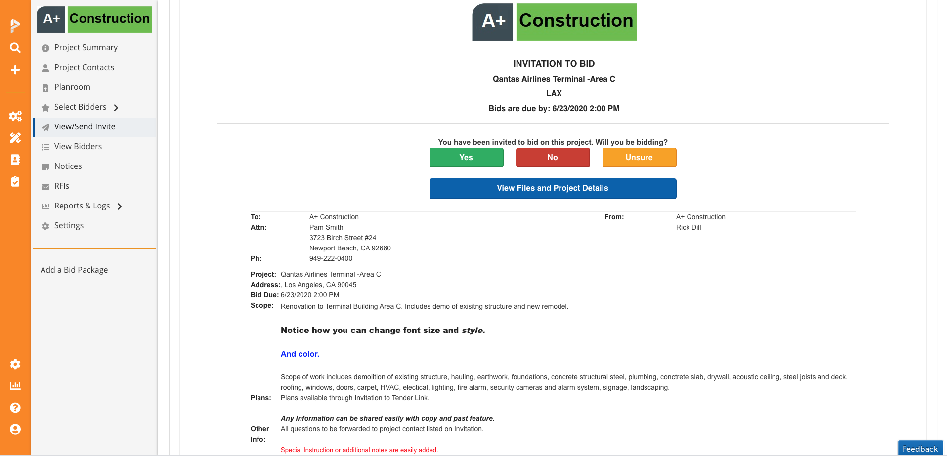 PipelineRFQ is a software solution that allows you to customize your CSI codes and descriptions with subcontractor selections processes, sending options, project bid list management, and more.