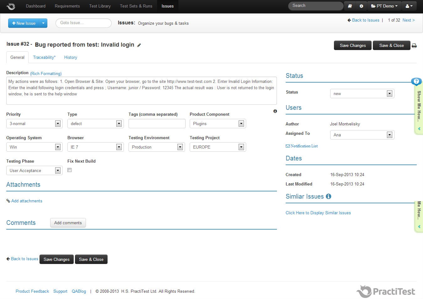 This software truly excels in its test management capabilities. With PractiTest, I can effortlessly create, assign, and track test cases, allowing for efficient collaboration between team members. The ability to attach documents, screenshots, and other relevant files to test cases further enhances the clarity and effectiveness of the testing process.
