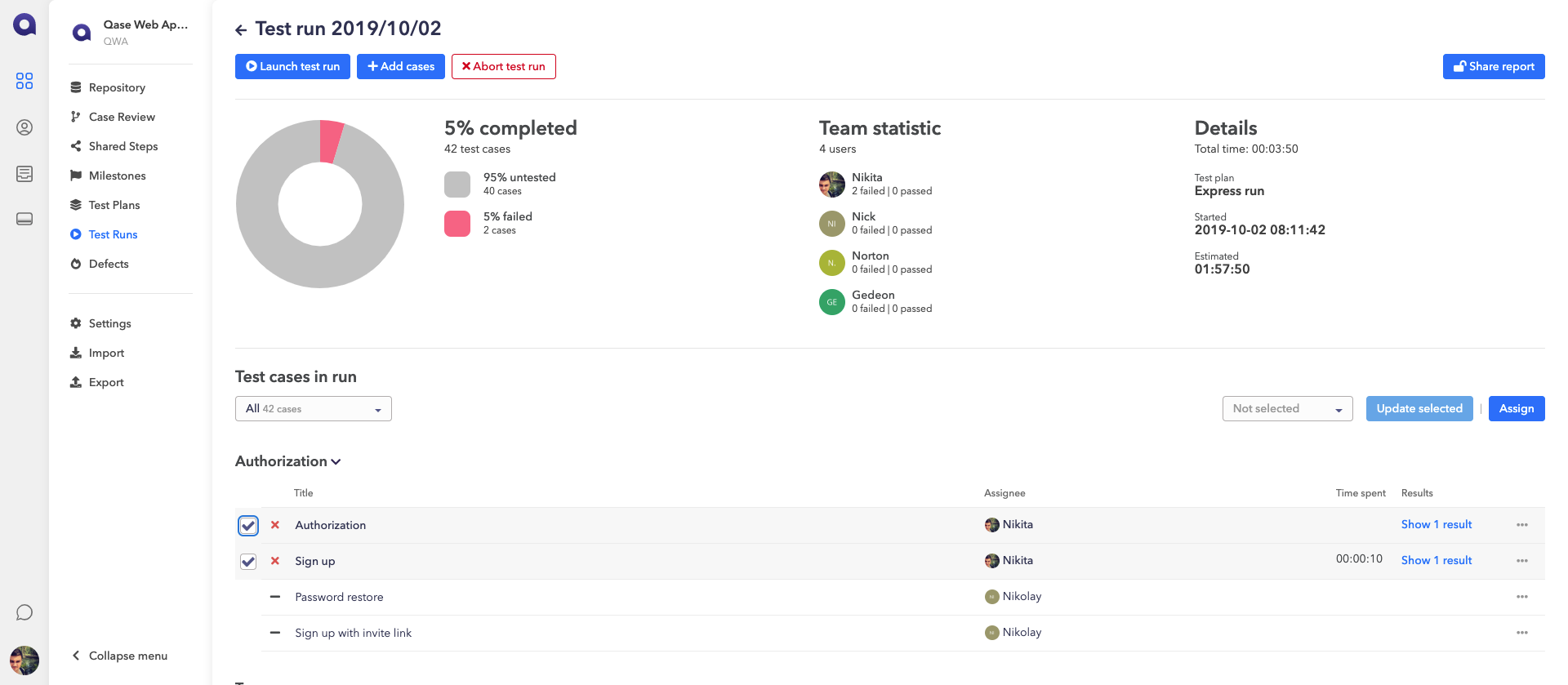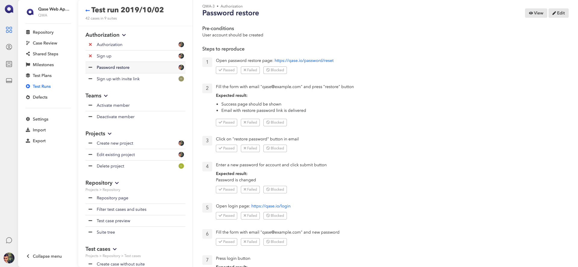 Qase makes it easy to manage test cases, compose test plans and perform test runs as an individual or in a team.