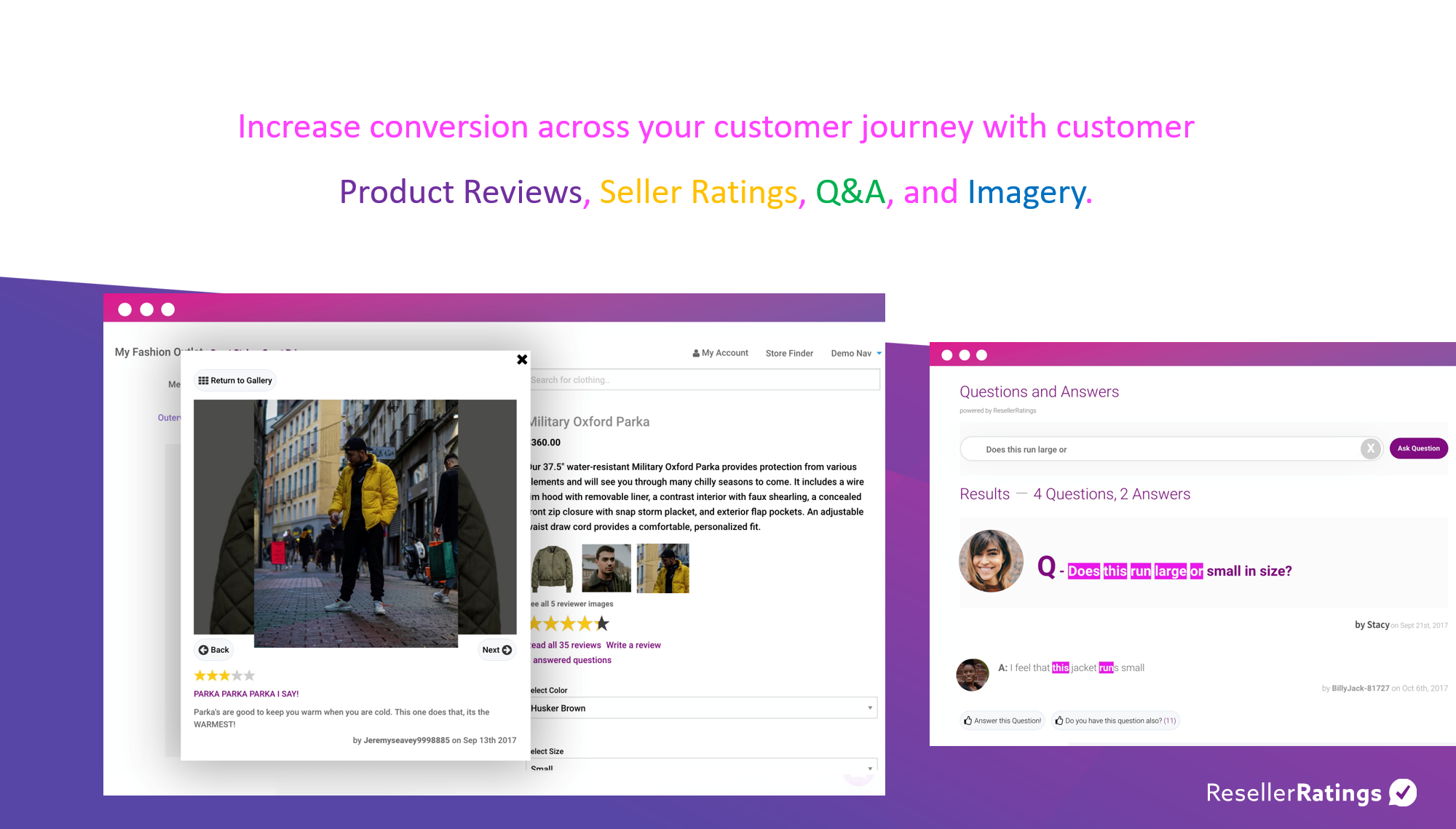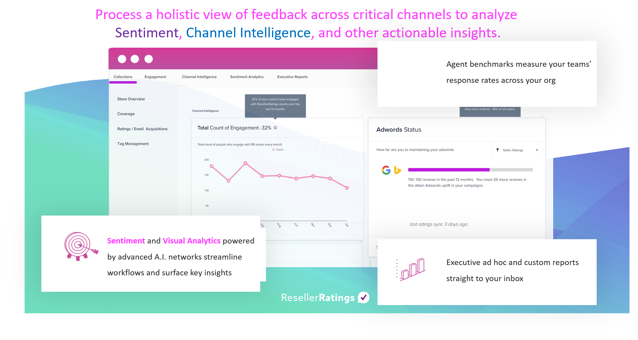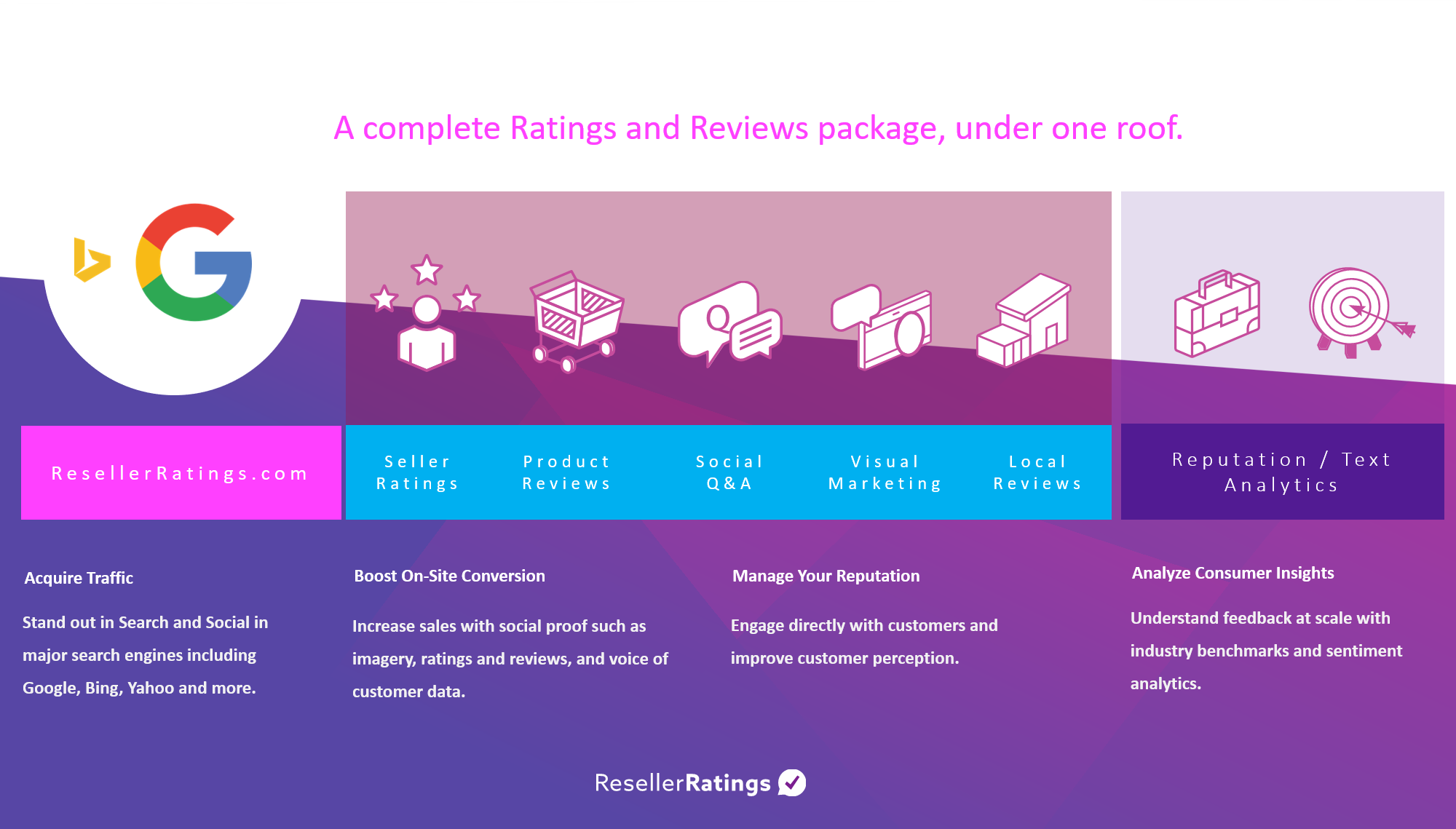 ResellerRatings is a retail commerce reviews site where consumers submit ratings and reviews of online retailers, and online retailers participate to respond to reviewers and to gather reviews from their customers post-purchase for customer sentiment analysis and UGC syndication through the worldâs largest search channels. The ResellerRatings Reviews Suite of tools provides a full spectrum UGC solution from product reviews, seller ratings, social Q&A to visual marketing.