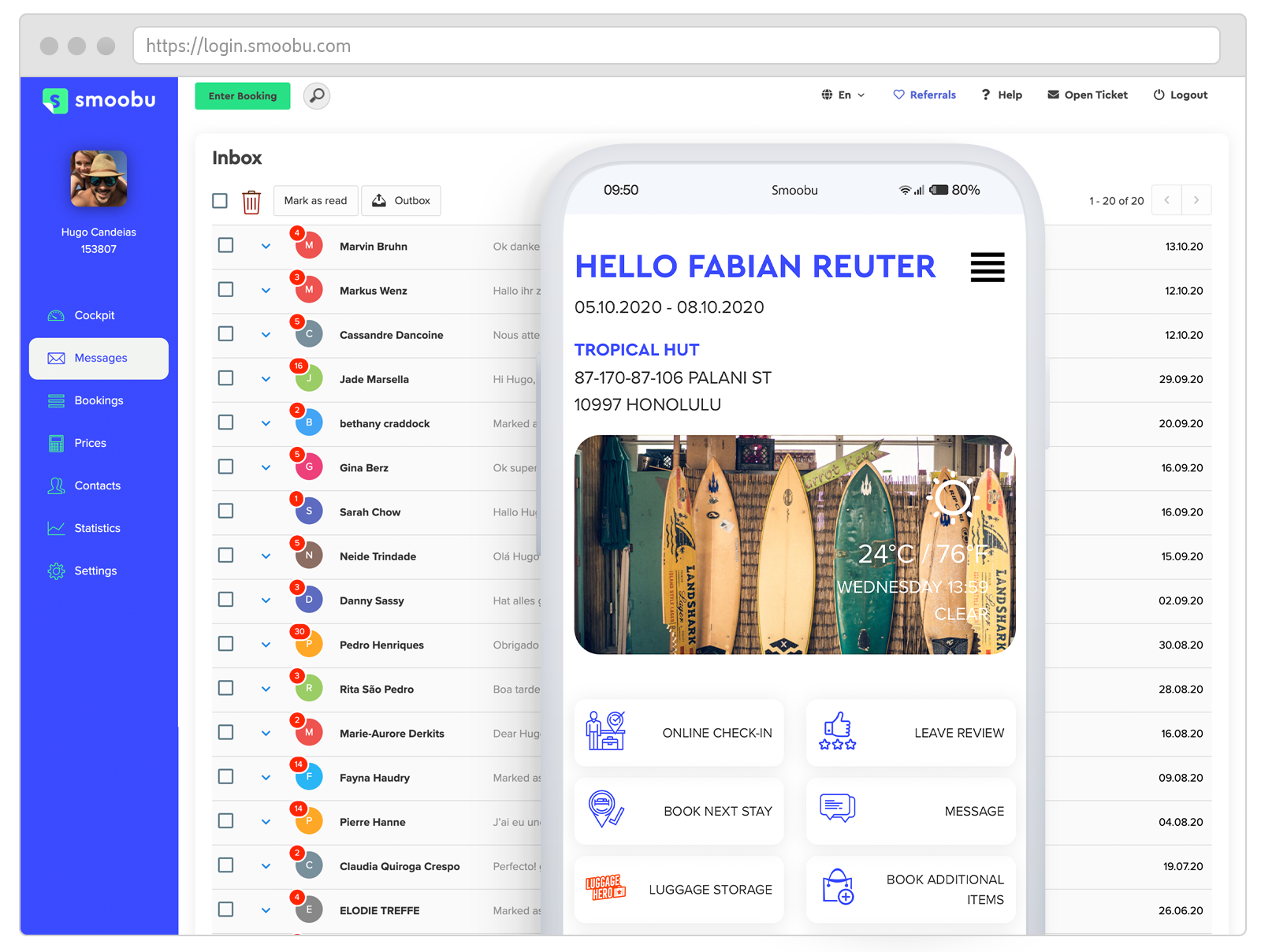 Smoobu offers efficient communication tools to streamline your interactions with guests. The app provides automated email templates for booking confirmations, check-in instructions, and post-stay reviews. You can also communicate with guests directly through the app, ensuring prompt responses and seamless communication throughout the guest's stay.