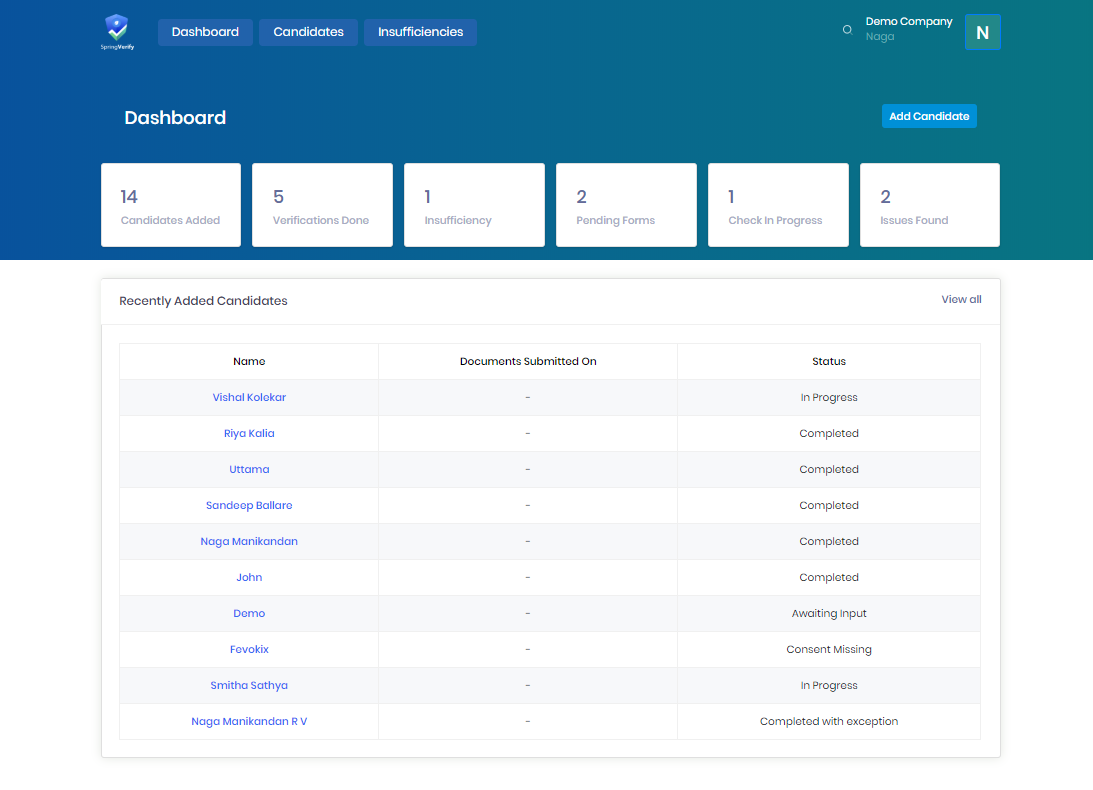 From the moment I started using SpringVerify, I was impressed by its user-friendly interface and intuitive design. The software boasts a sleek and modern layout that makes navigating through its various features a breeze. Whether you're a seasoned HR professional or a novice recruiter, SpringVerify's user interface ensures a smooth and seamless experience.