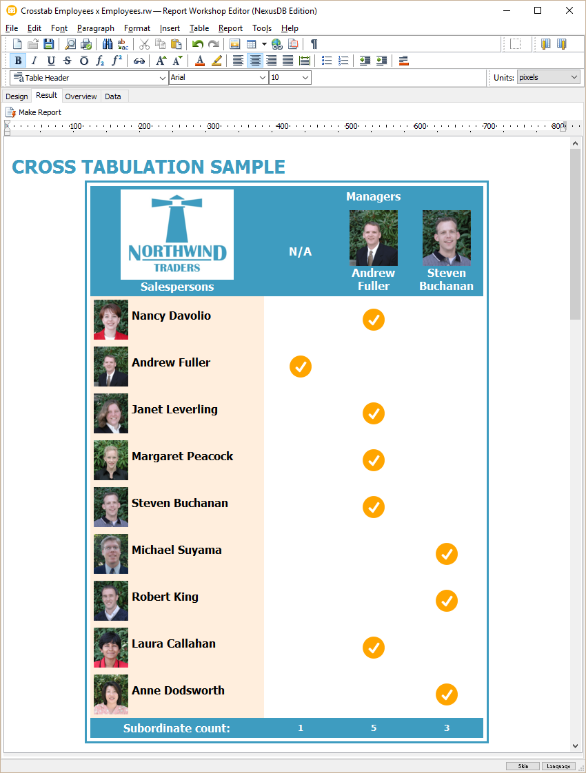 TRichView is a suite of components for editing rich text documents. For Delphi, C++Builder, and Lazarus. We also offer the following add-ons to TRichView. ScaleRichView provides WYSIWYG editing of rich text documents. ScaleRichView editor is based on TRichView engine and supports almost all features of TRichView documents. Report Workshop allows building reports in TRichView and ScaleRichView editors. It includes ready-to-use data providers for various database components (including FireDAC, Interbase Express, dbExpress, ADO(dbGo), BDE, UniDAC and other DACs by DevArt, DACs by MicroOLAP, ZEOS, IB Objects, AbsoluteDB, NexusDB, DBISAM, ElevateDB).