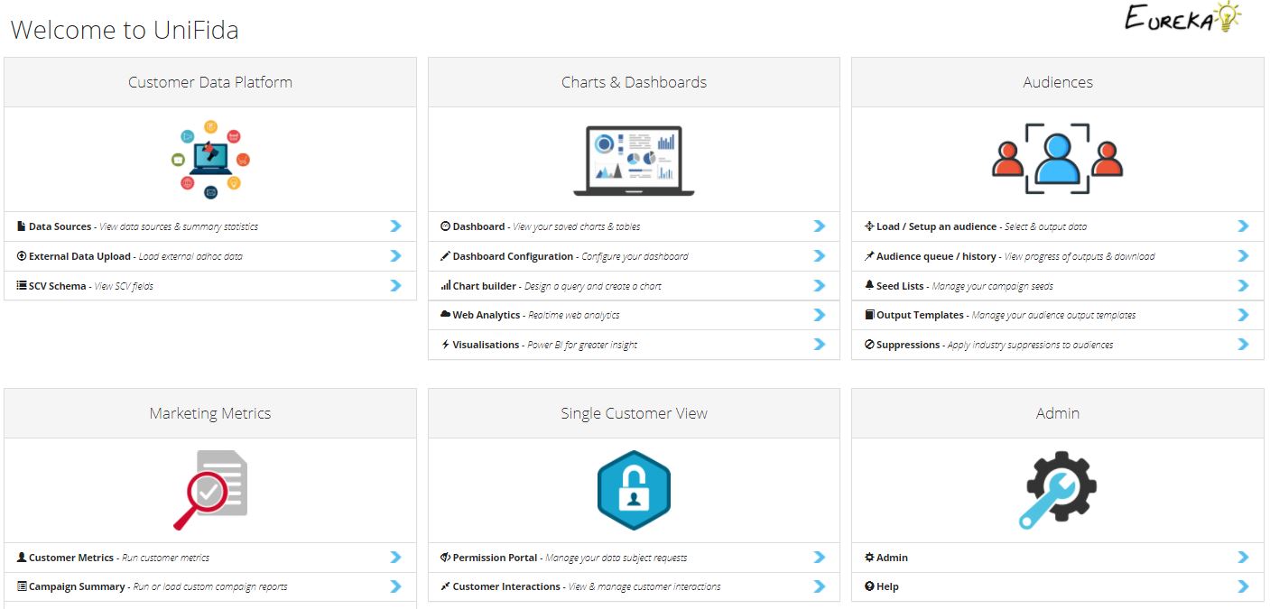 UniFida is a cloud based customer data platform designed to appeal to larger SMEs who are looking for a functionally rich but moderately priced solution. Developed over the last six years the platform ingests data from multiple online and offline sources, undertakes customer identity resolution, provides dashboards and Power BI data visualisation, builds audiences for batch and trigger campaigns, provides customer and campaign performance metrics, undertakes AI based marketing mix attribution, and fulfills customers' GDPR requirements. Support is focussed on configuring the technology to clients' precise requirements, and providing data science services, combined with digital and and offline marketing advice.