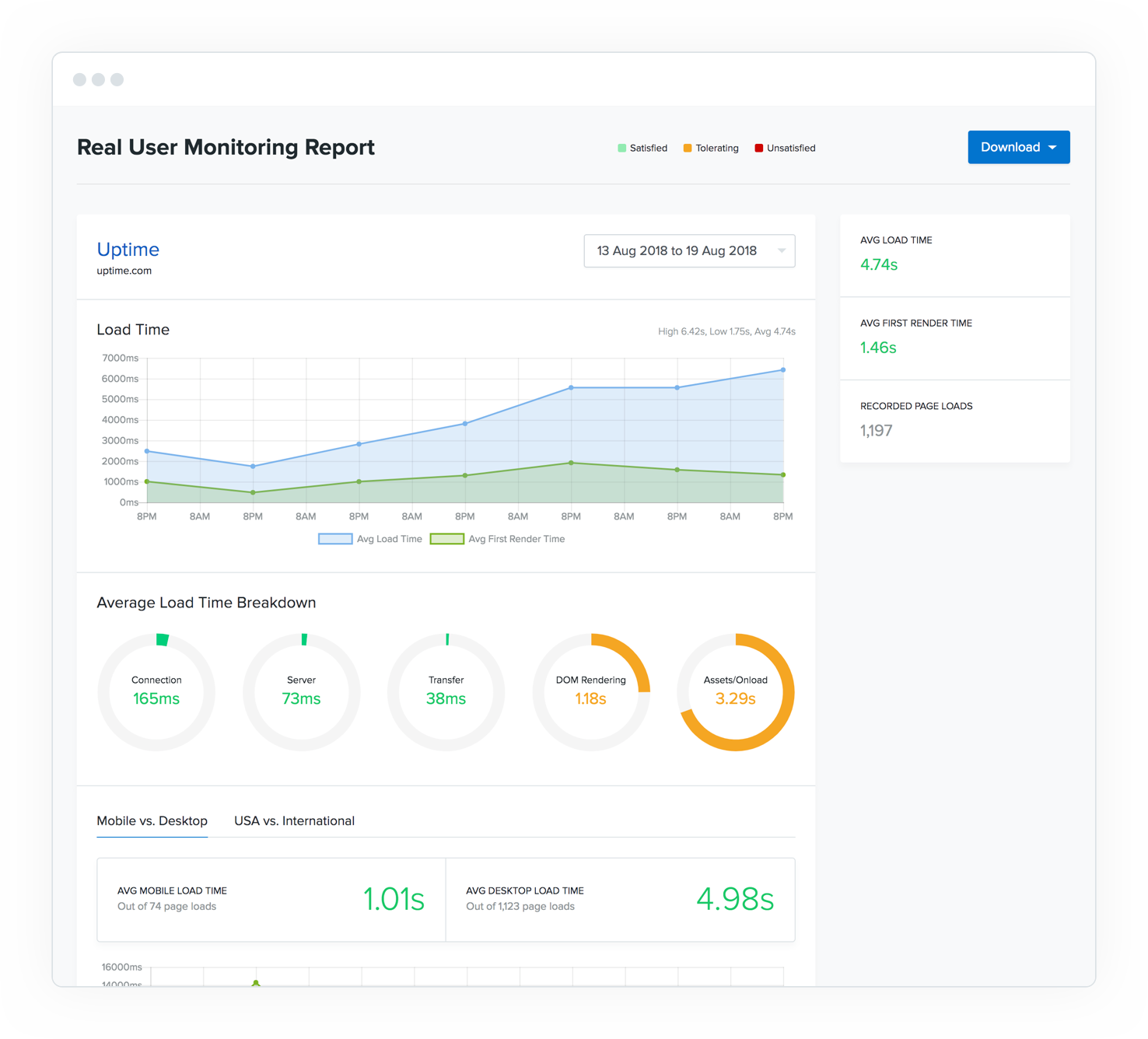 Uptime.com provides reliable and accurate monitoring statistics in real-time, allowing you to stay informed of any issues with your websites.
