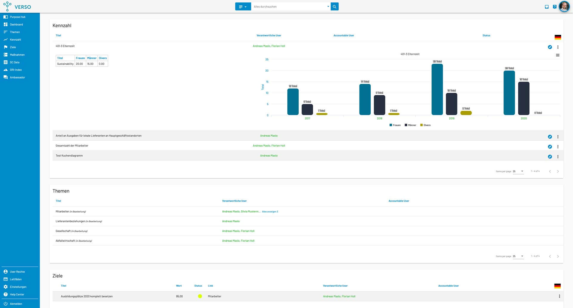 After using the VERSO software for a few weeks, I am thoroughly impressed with its capabilities and user-friendly interface. The wide range of features and tools available make it a comprehensive solution for managing corporate social responsibility and sustainability initiatives.
