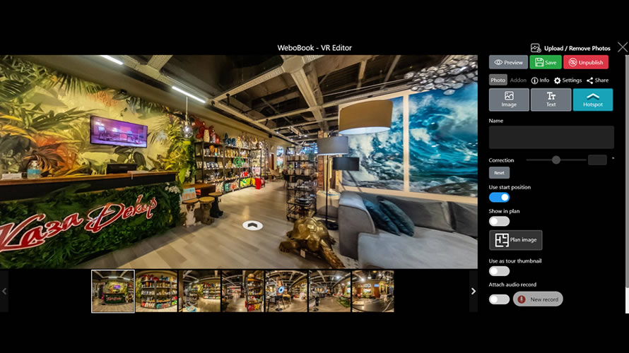 360 ° virtual tours with captivating virtual reality. Quick creator of virtual tours for real estate, hotels, museums or just a place. We have an easy and powerful virtual tour creator, as well as a vr player that makes watching virtual tours extremely enjoyable with its smooth transitions and animations. WebBook provides a powerful and free web API through which you can integrate the creation and visualization of virtual tours directly into your site. You can try our virtual tour software for free, we offer three free tours without the limit of panoramic photos.