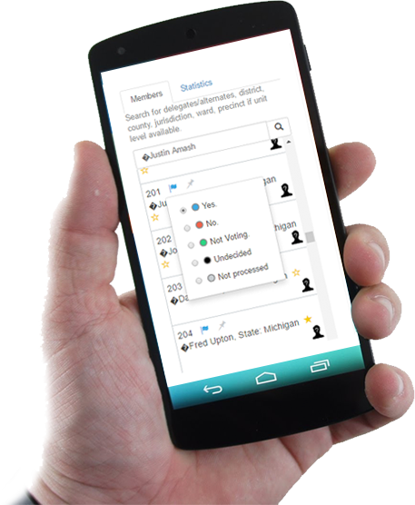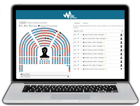 Whipping votes GOTV app Predicts and live tracks the vote count for an upcoming election in real time. Ability to use the app for different convention types: permanent conventions like Congress sessions, State party conventions, County conventions, Jurisdiction conventions, Ward caucus conventions, Business election assemblies, Student elections, Local municipal elections, and any other assembly that uses Robert's rules of order or parliamentary procedures. Ability to use PC, tablet, mobile 100% encryption on data Ability to update and display status on vote preference across all whips at real time Ability to view whole floor of assembly delegates with their vote preferences Ability to grant whip rights for the whole floor, unit(s) of the floor or sub units Ability to indicate voter influencers Ability to indicate if delegate is present on the floor Whip the Floor app gives assigned whips the long waited tool to whip votes in real time and receive updates instantly from other whips The users of the app must be authorized by whipthefloor.com campaign admin to get access to campaign through the app.