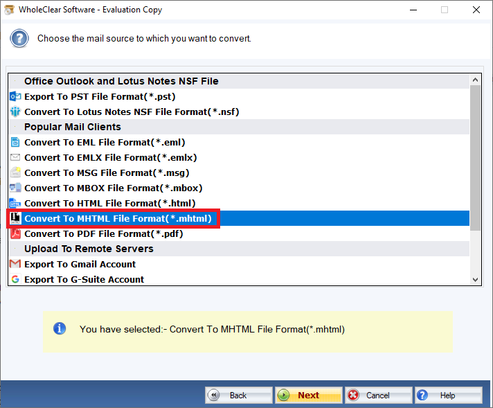 WholeClear Thunderbird to MHTML Converter