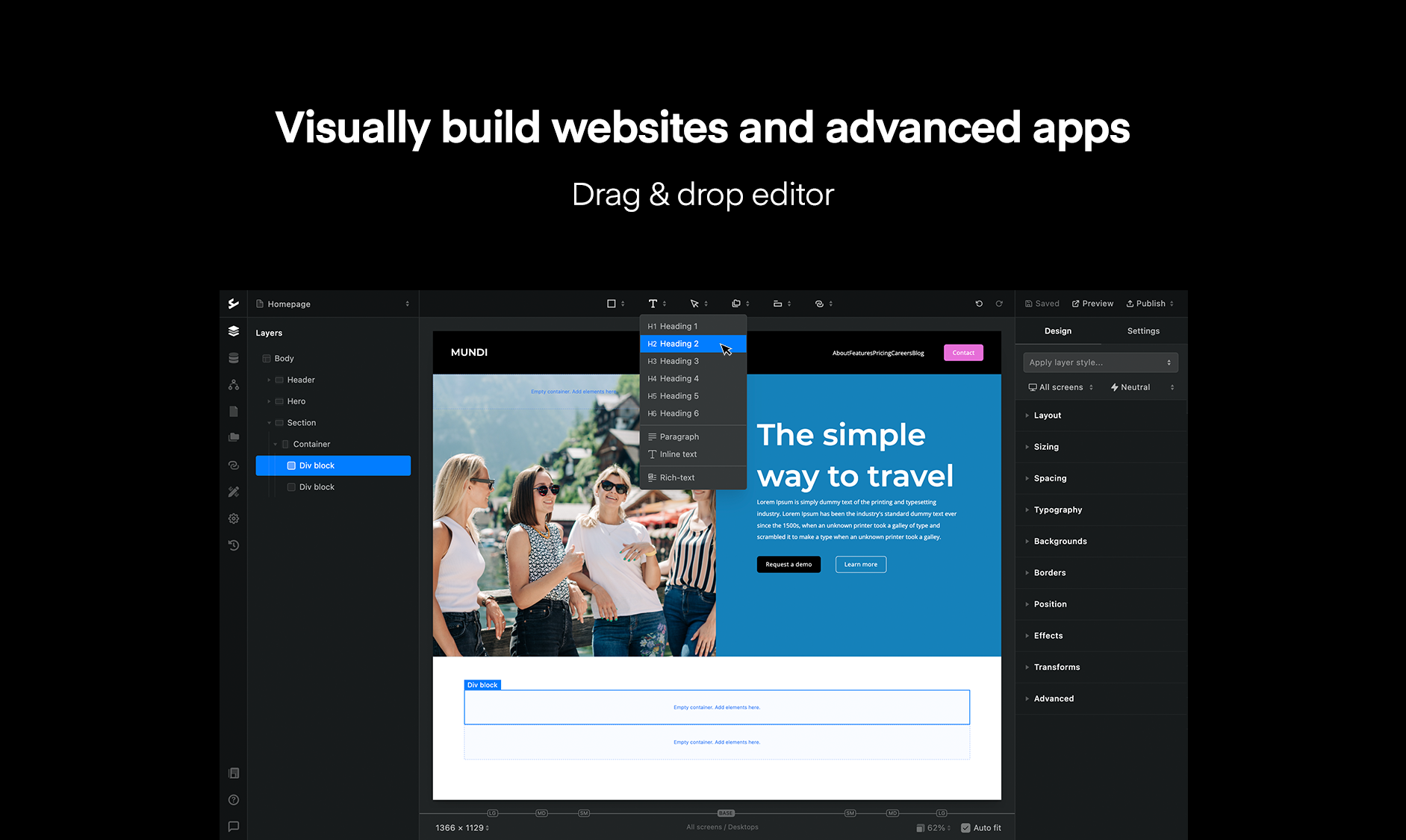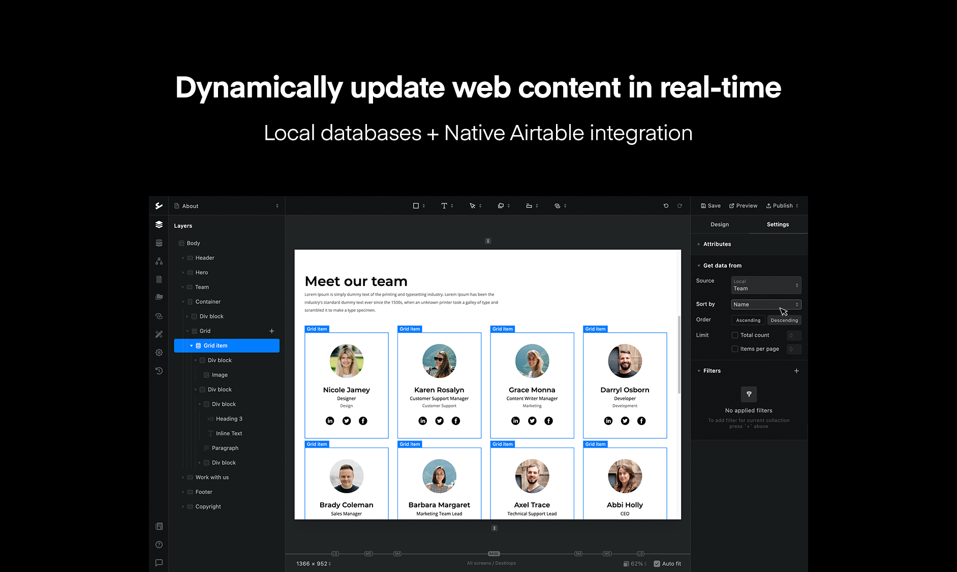 Ycode is the no-code web builder where design meets function. Start web projects from scratch or pick from in-app templates. Use the intuitive design builder that’s based on the box model to place elements—there’s no code involved! Elements can be customized using countless design settings and saved as components for quicker building. Create exactly what you want without compromising your vision! Make pages interactive with workflows, build member communities with user authentication, and update content in real-time using local databases and the native Airtable integration. Ycode produces clean code based on open-source frameworks like Laravel and Tailwind CSS, hosting your projects safely and reliably on Google Cloud. And there’s no vendor lock-in! Use our export service to host projects elsewhere or extend the code with developers. Start building with Ycode today—it’s free!